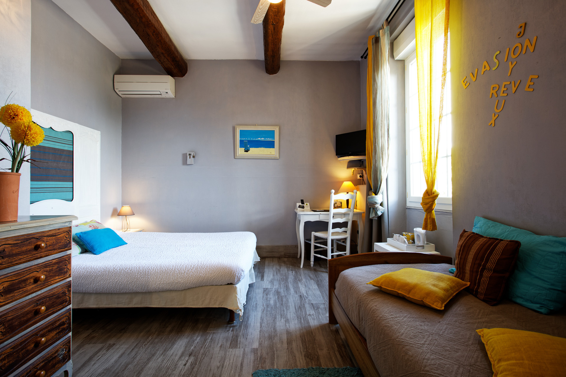L'hôtel dispose lui de 10 chambres et d'une salle de petit déjjeuner donnant sur le jardin (pouvant être également utilisée pour les groupes ou les séminaires).