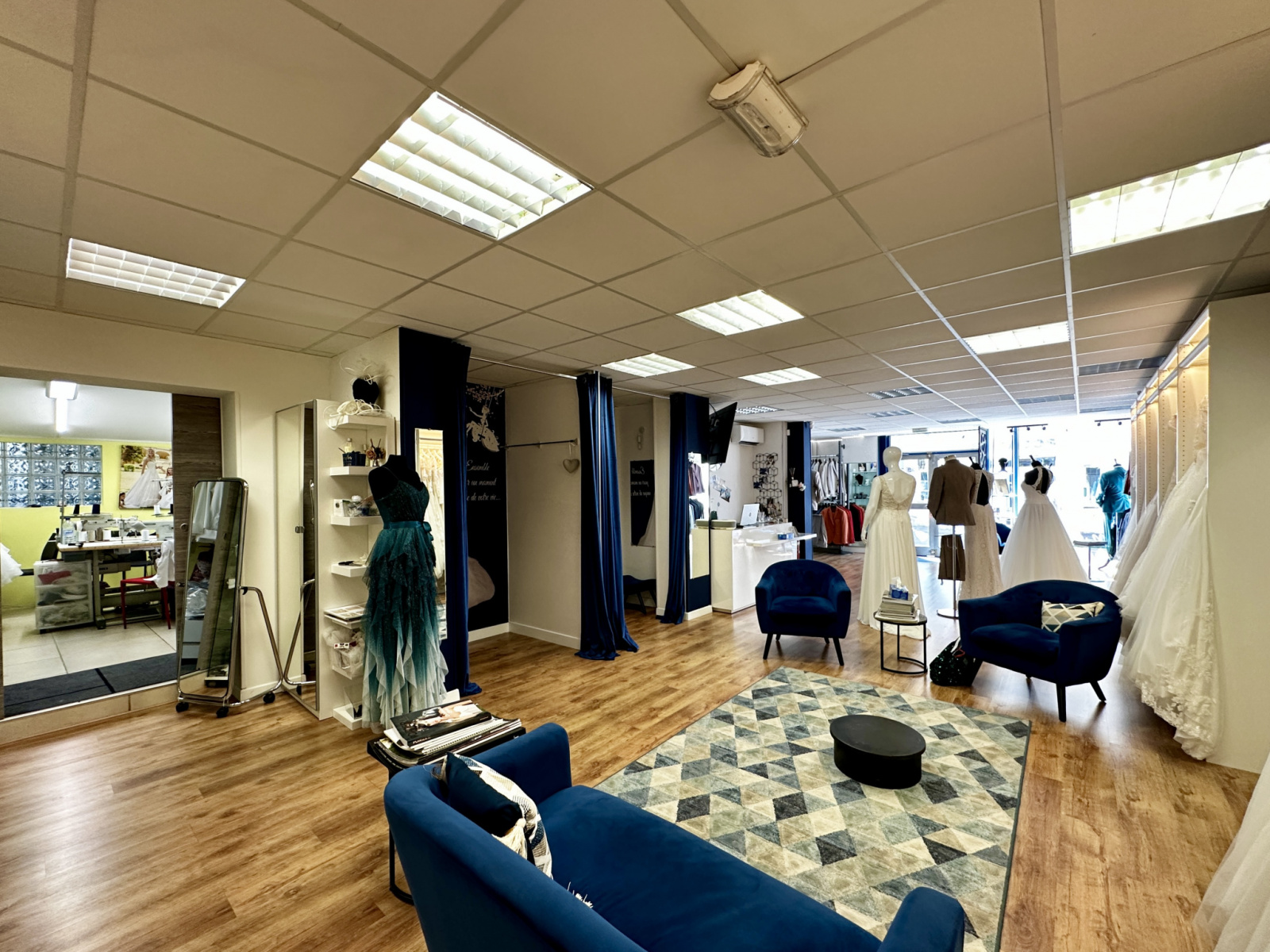 Ce local est composé d'une grande pièce réservée à la vente (climatisée), d'un bureau (climatisé), d'un atelier à l'abris des regards et d'une réserve dans l'arrière boutique.