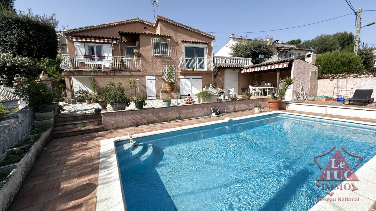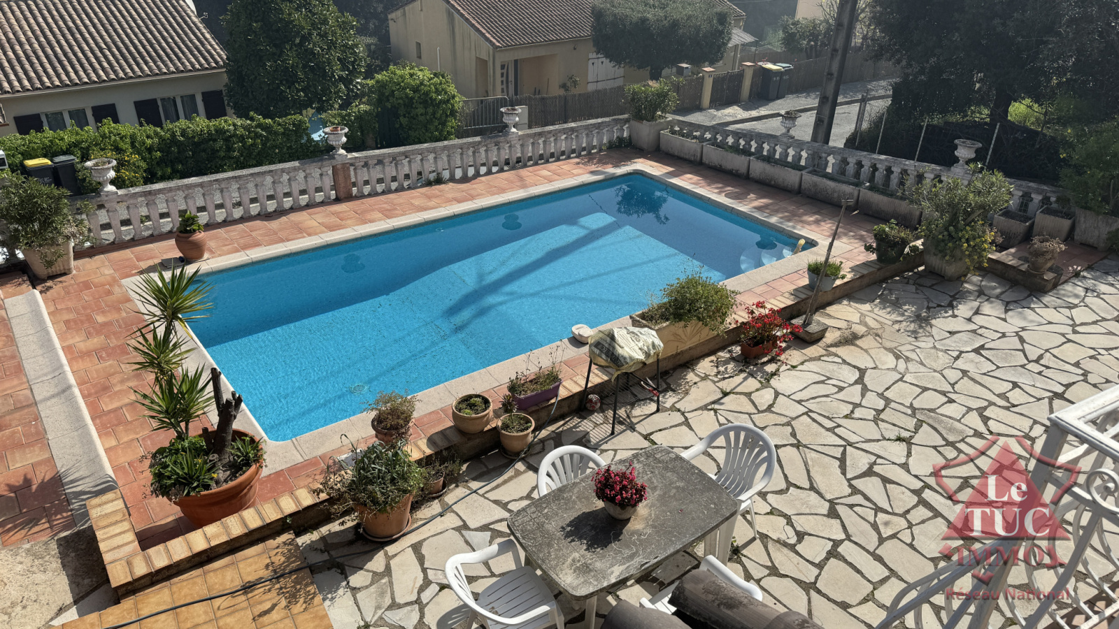 Grandes terrasses, piscine en copropriété (2 copropriétaires en tout).