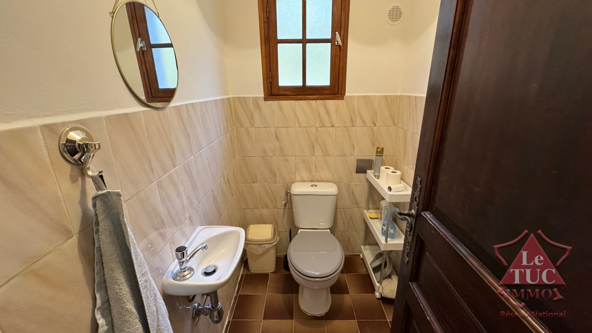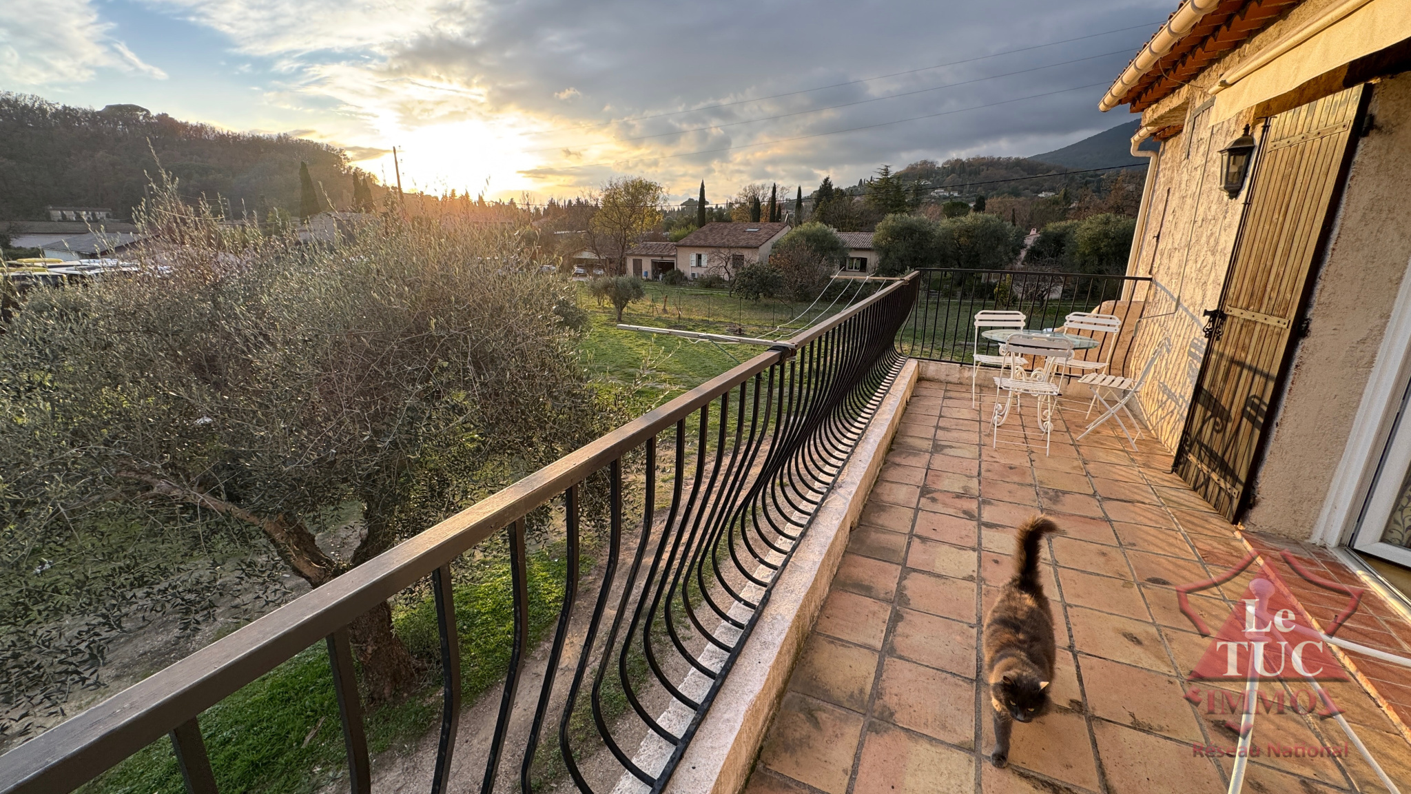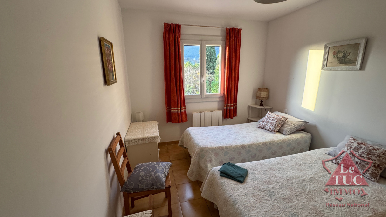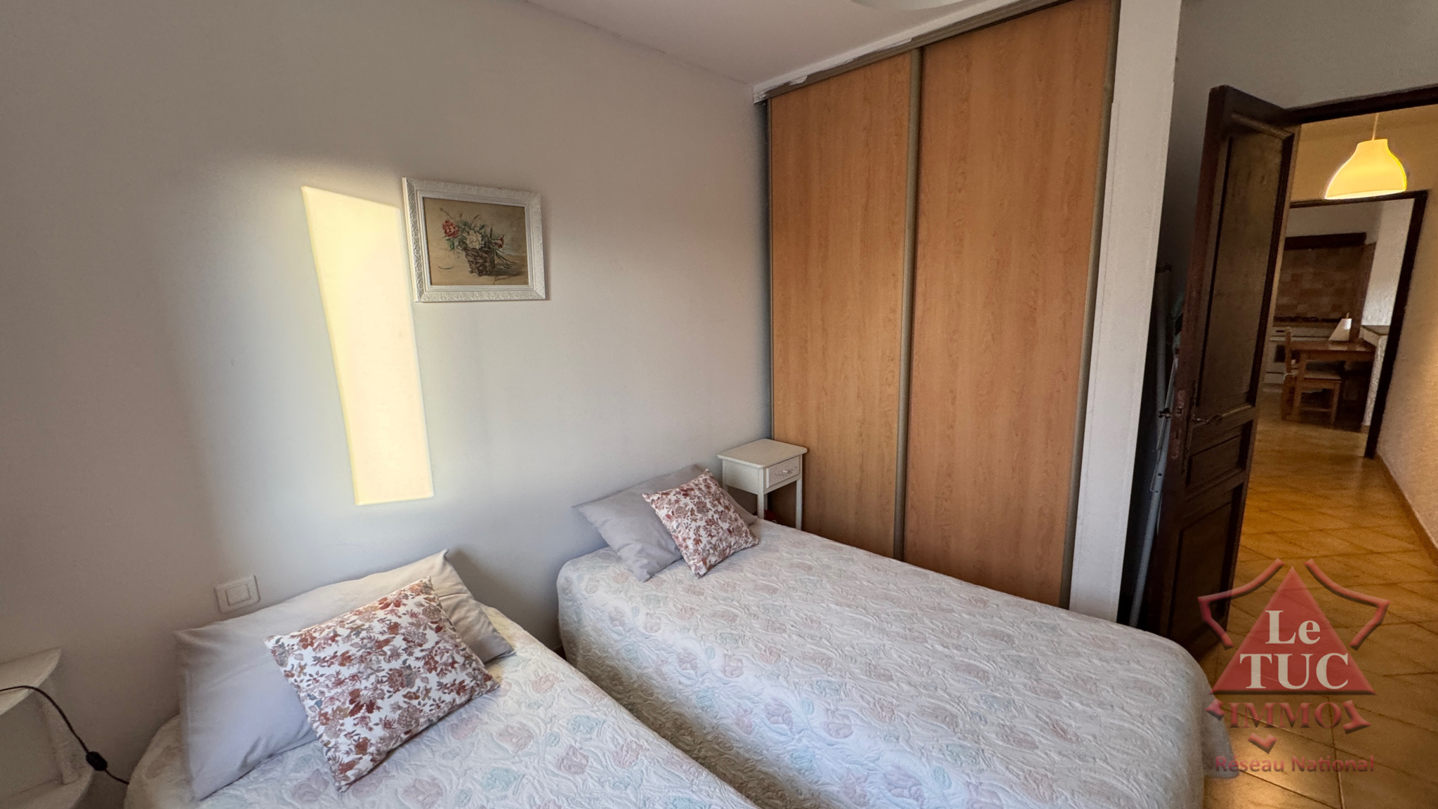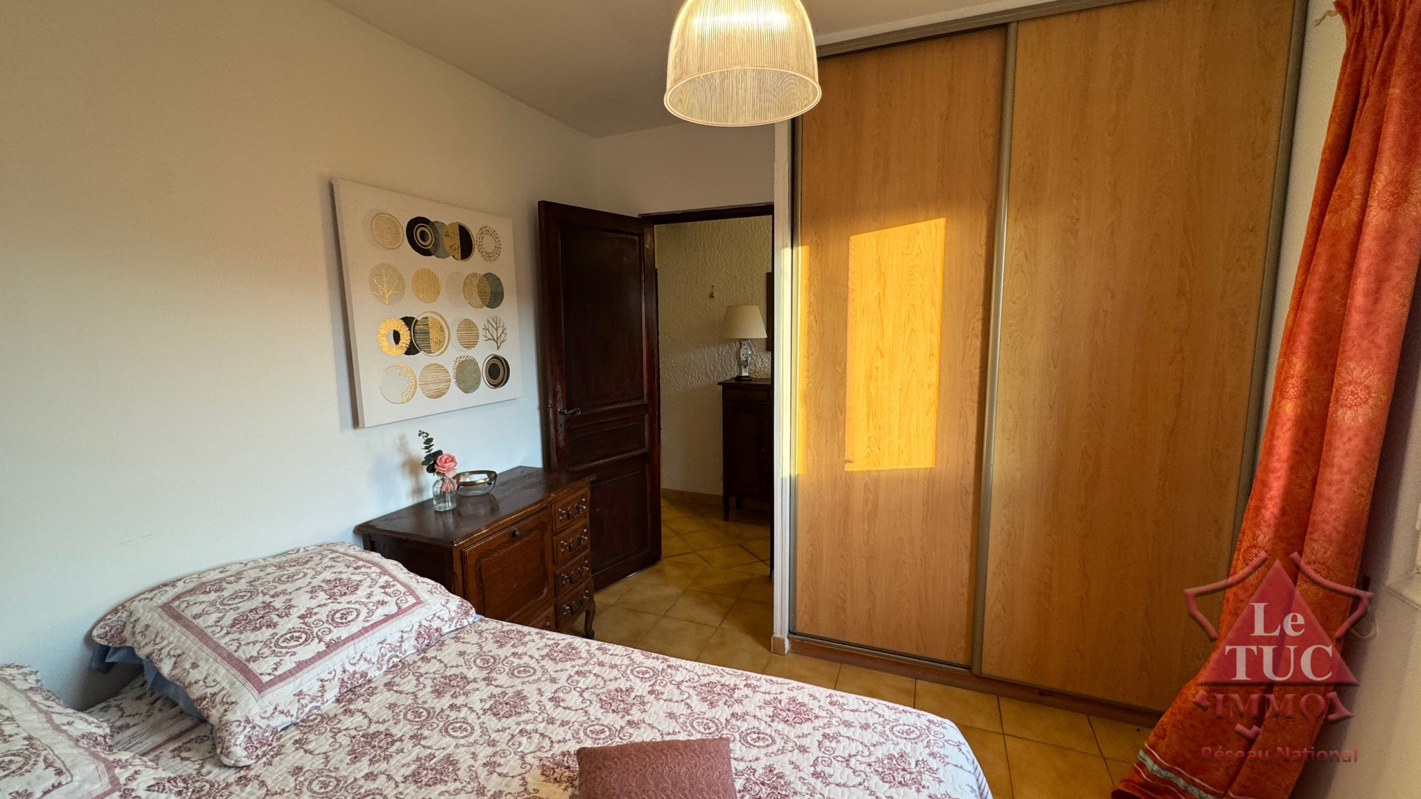 Au premier étage d'une villa disposant d'un terrain de 4 000 m2 environ.