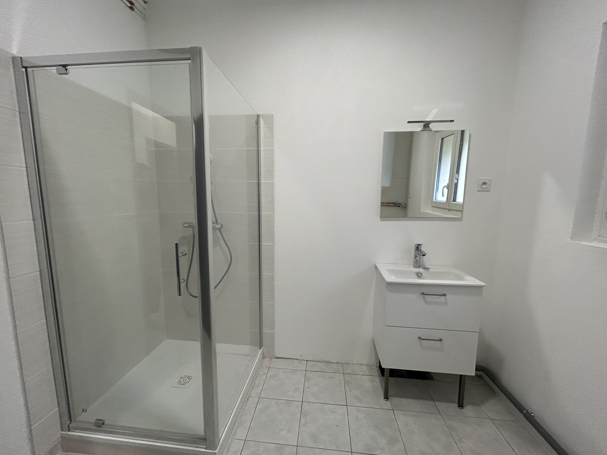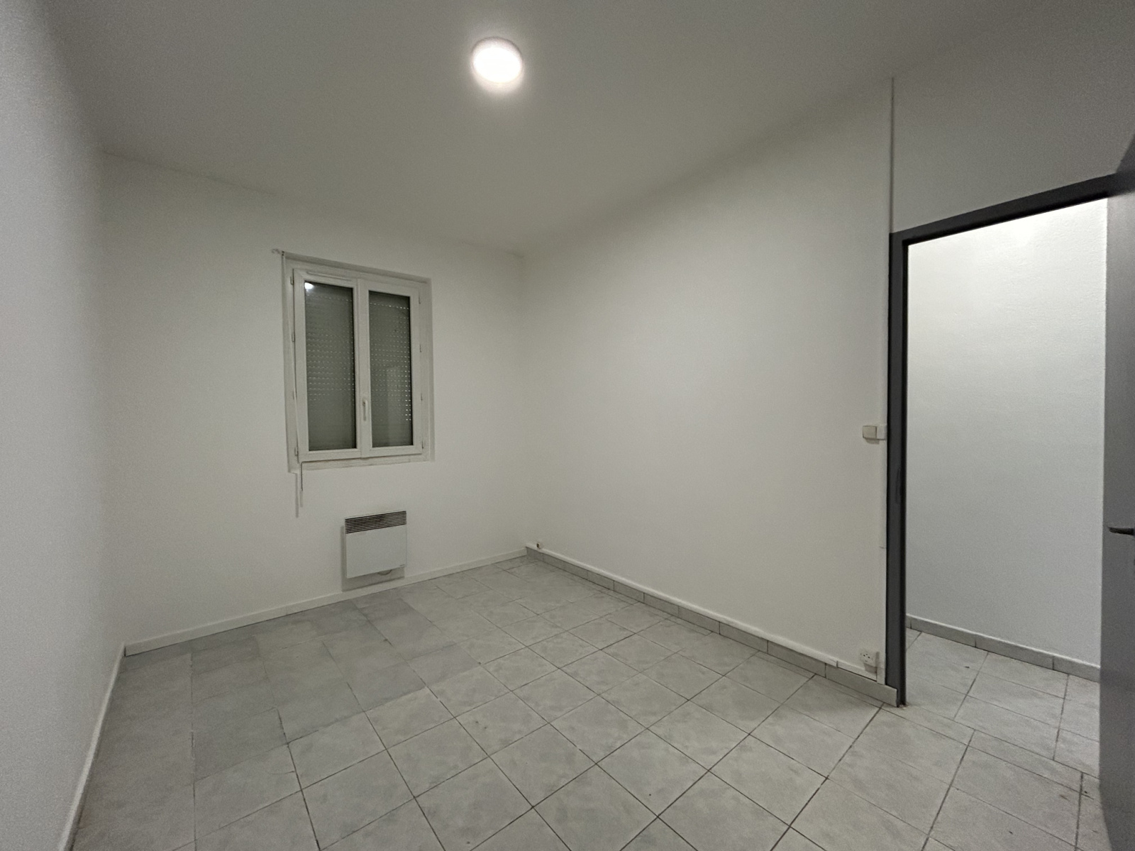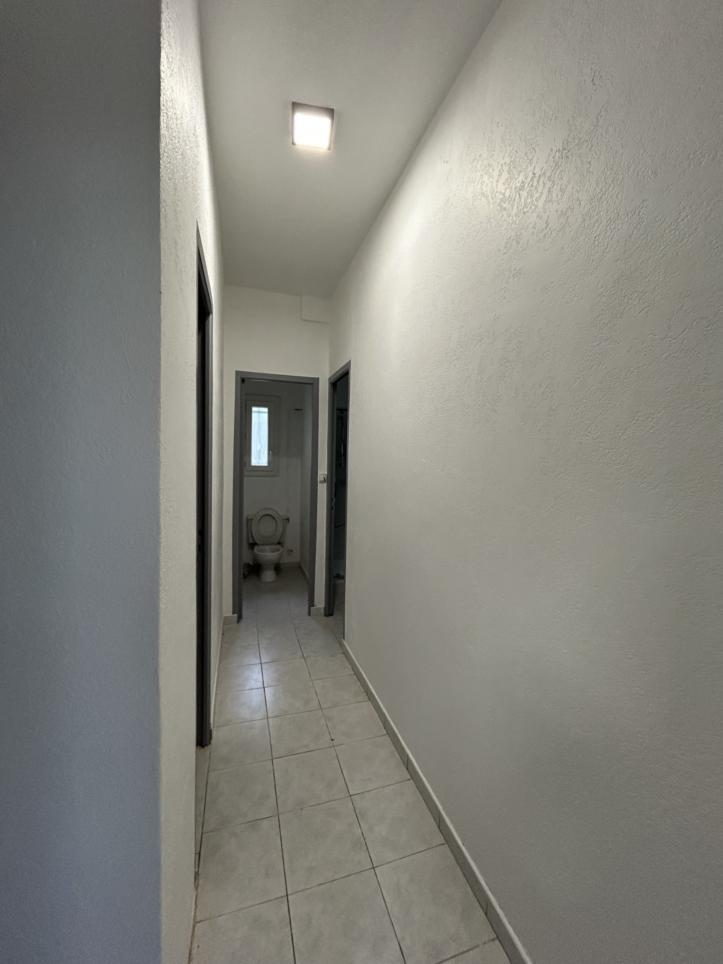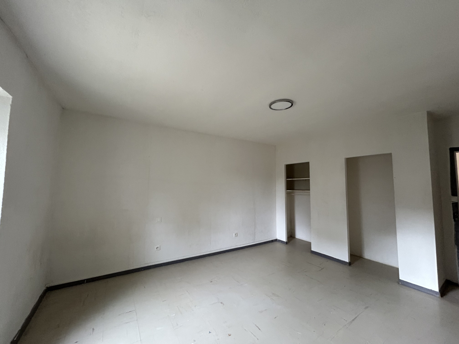 Entrée dans pièce de vie, coin cuisine, un WC, une chambre et salle d'eau,