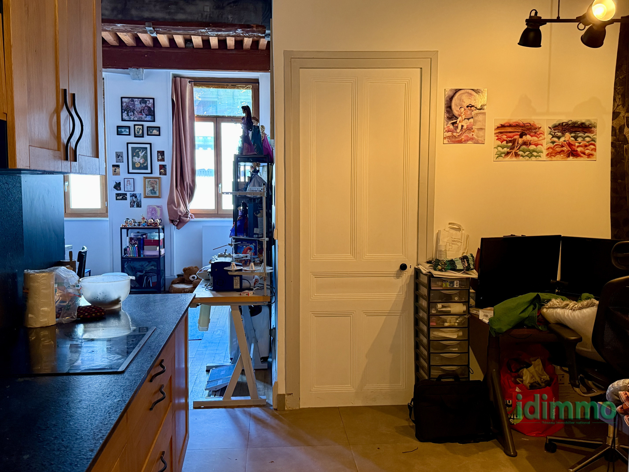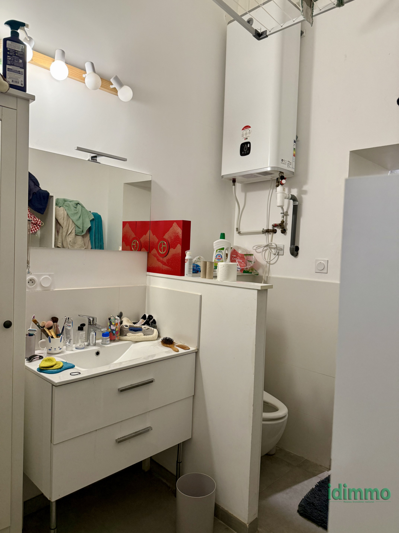Entrée avec placard, très belle cuisine meublée entièrement équipée, séjour meublée avec 2 fenêtres avec vue dégagée, 1 chambre avec placard, salle d'eau avec ouverture wc japonai, buanderie.
