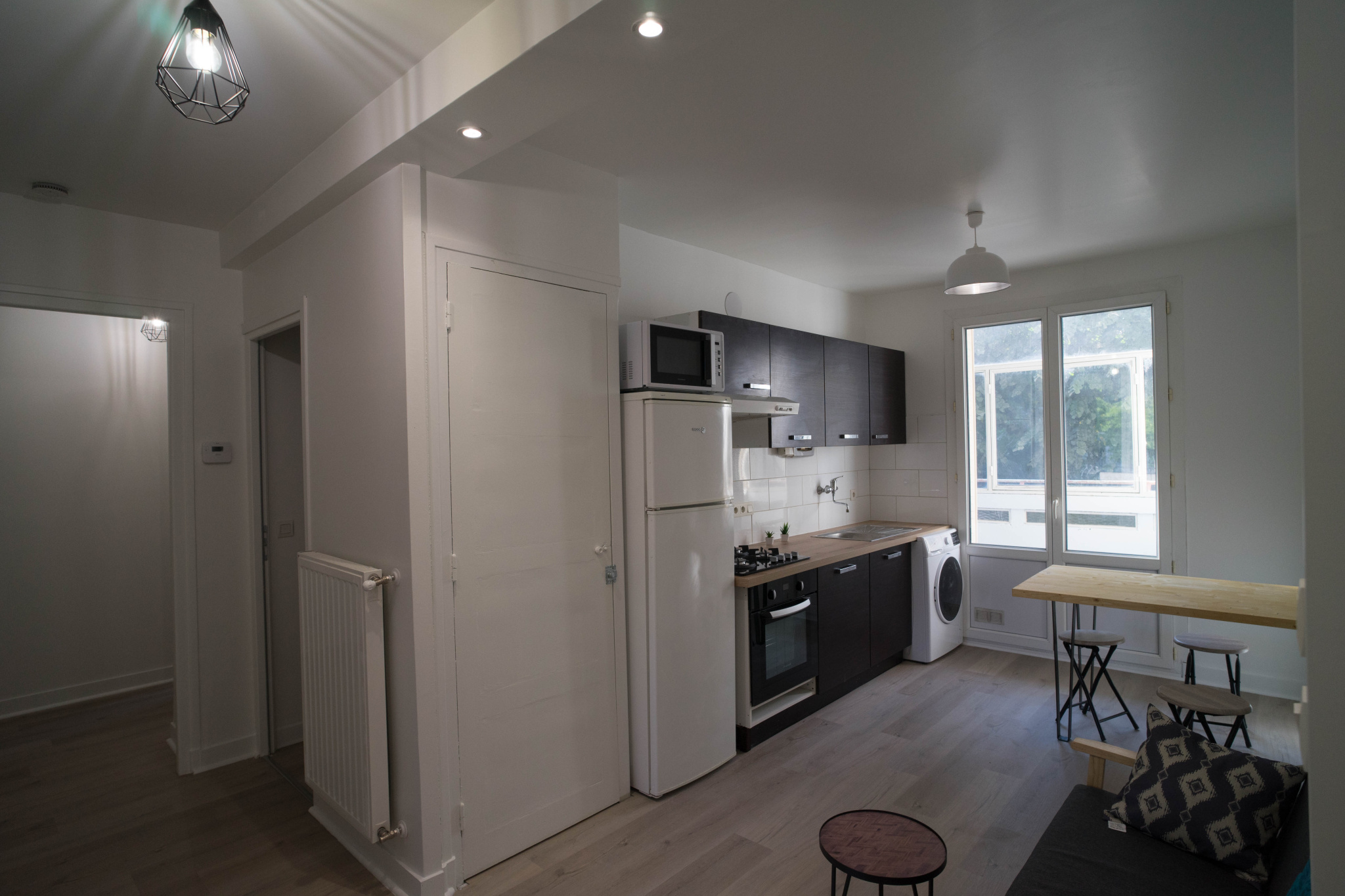 - Grande cuisine équipée ouvrant sur un balcon fermé de 7,7 m²