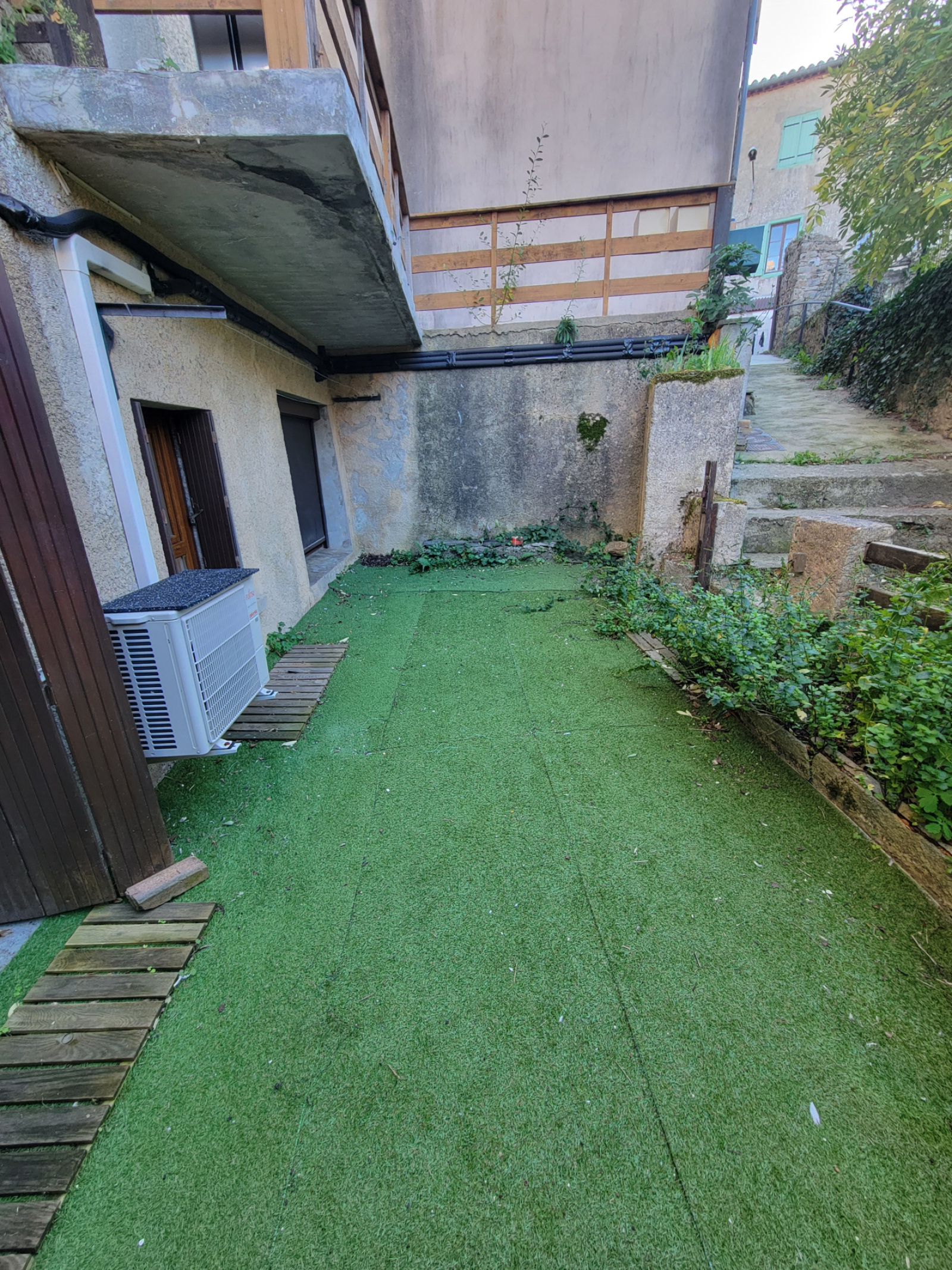De plain pied, appartement de type T2 meublé avec jardin.