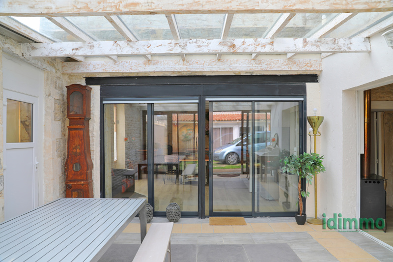 Vous entrez dans la maison par le hall avec un sol authentique en tomettes. Sur votre gauche se trouve une grande chambre avec un poêle à gaz et un sol en bois.