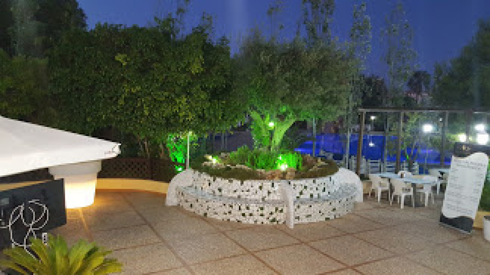 L’hôtel est entouré d’un mur de deux mètres de haut.