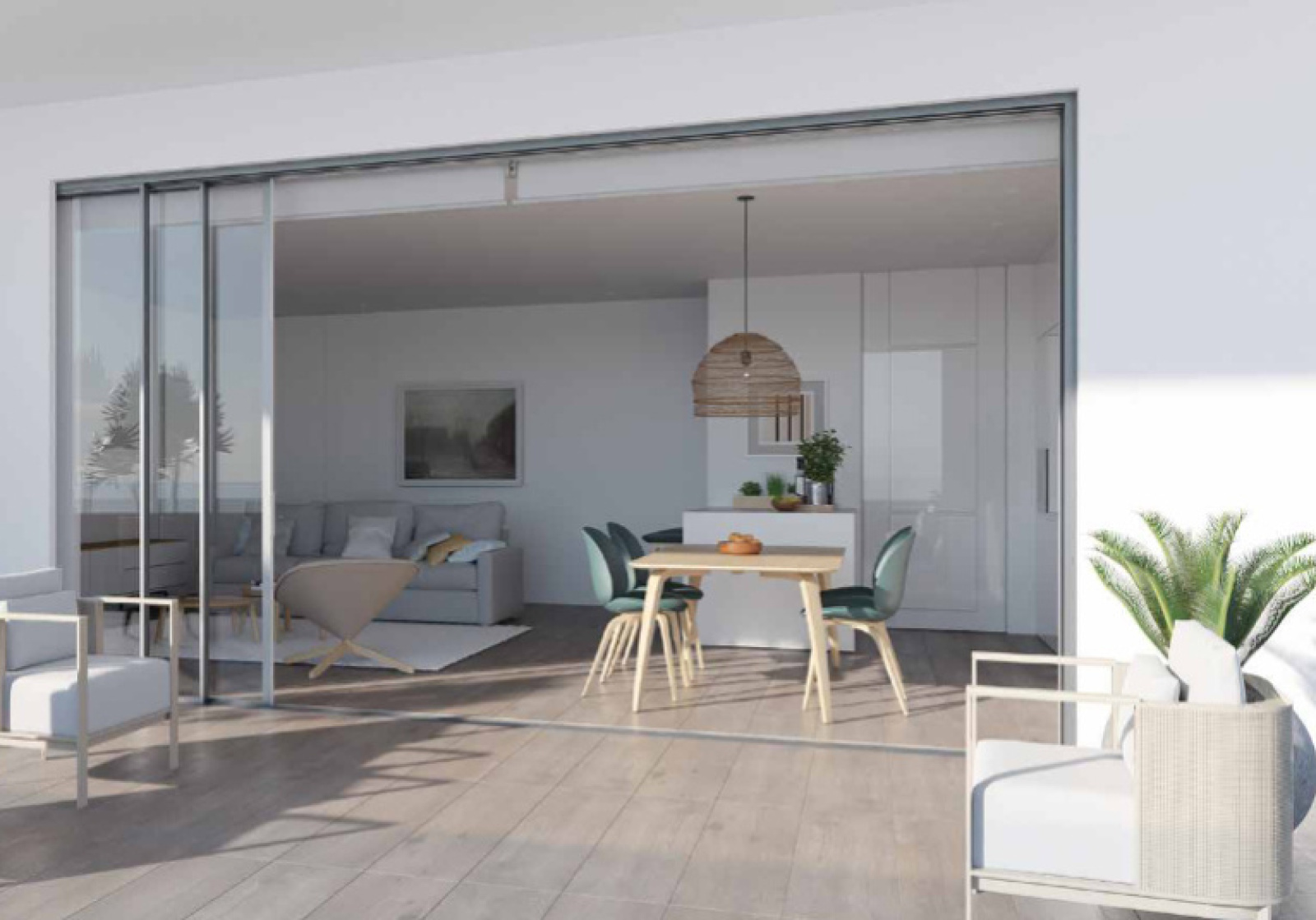 • Vastes terrasses profondes avec fenêtres coulissantes pour une vie intérieure et extérieure sans heurts.