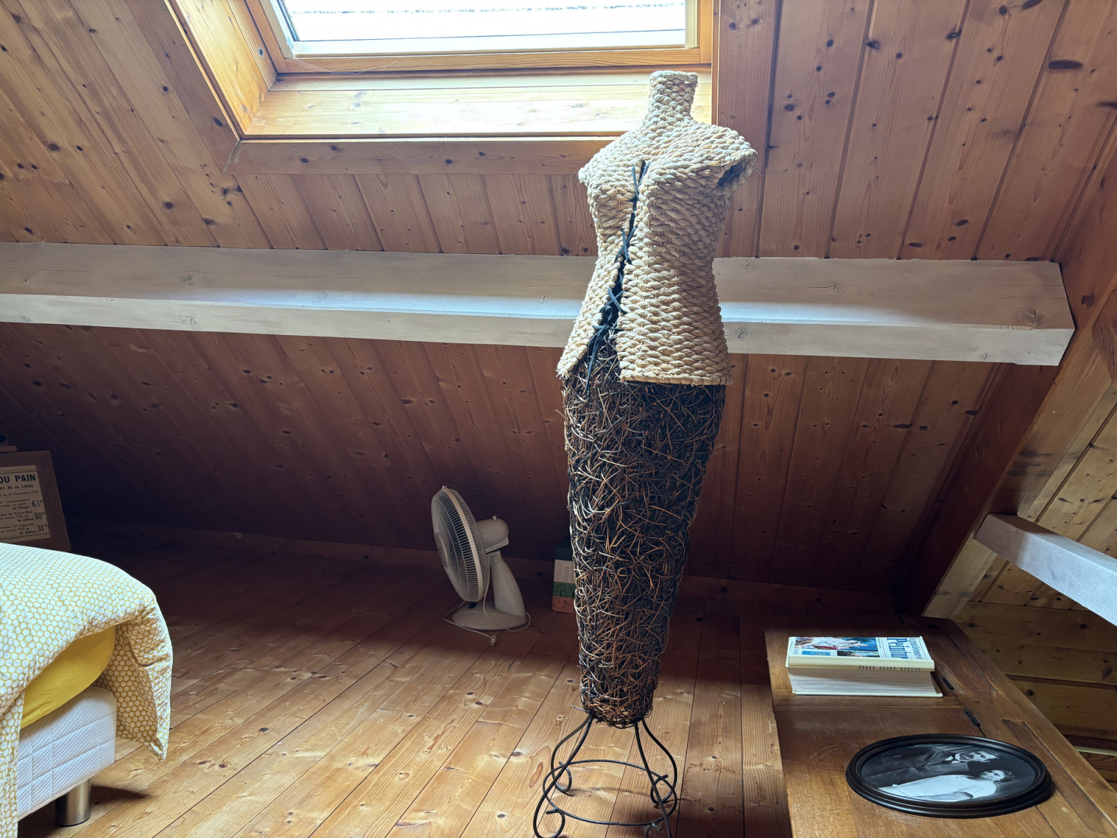 Un escalier mène à la mezzanine, où se trouve la chambre ouverte sur la pièce à vivre.