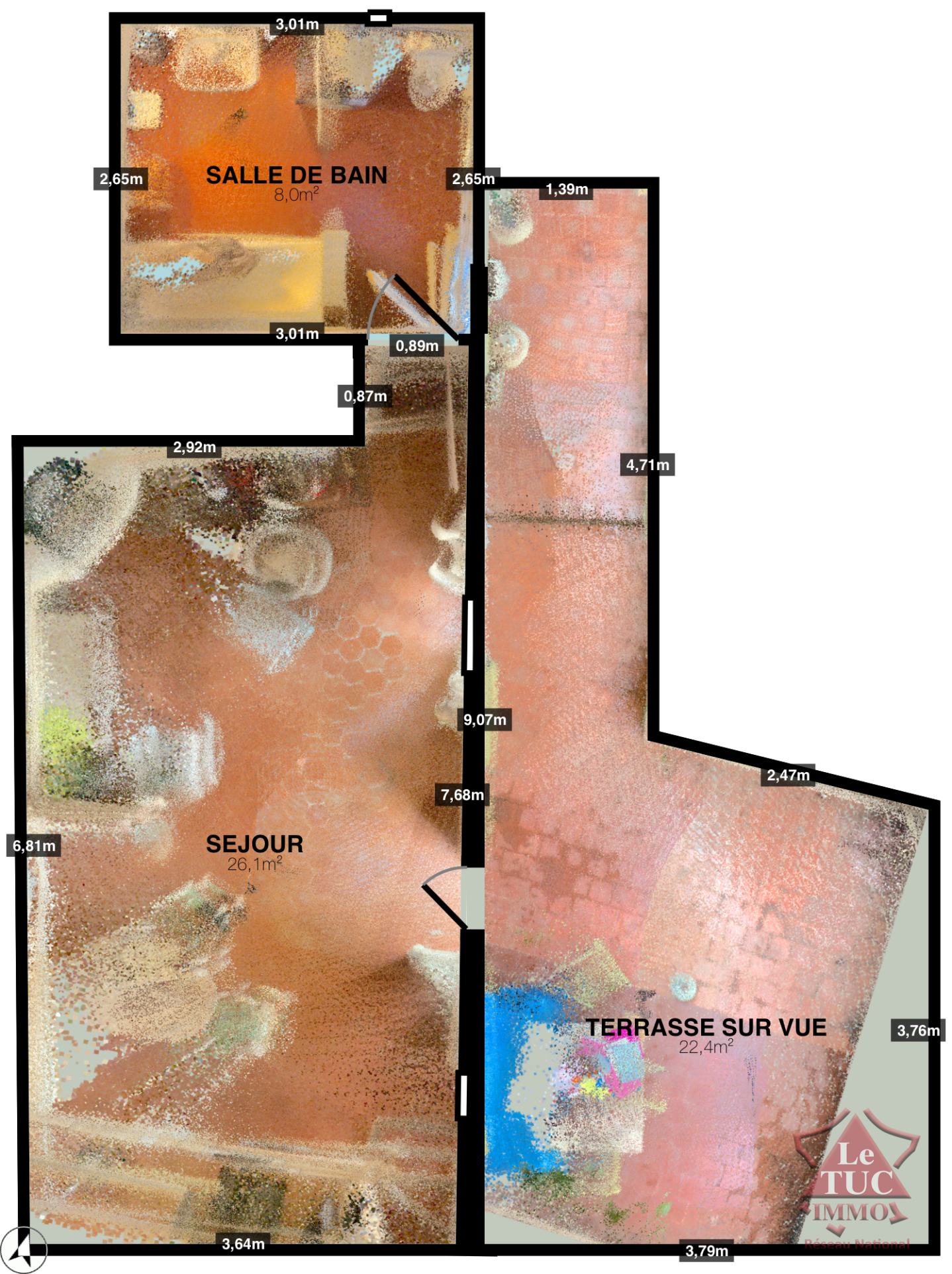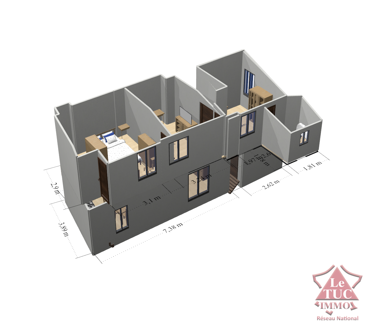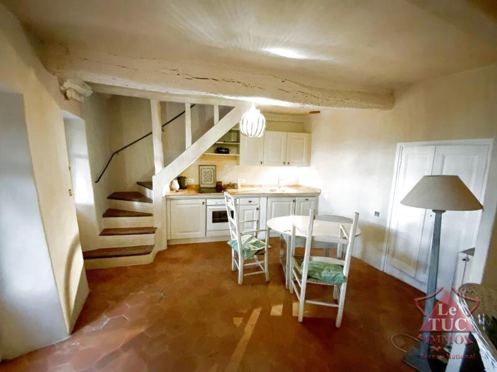 Salon cuisine entièrement aménagée, salle de bain toilettes.