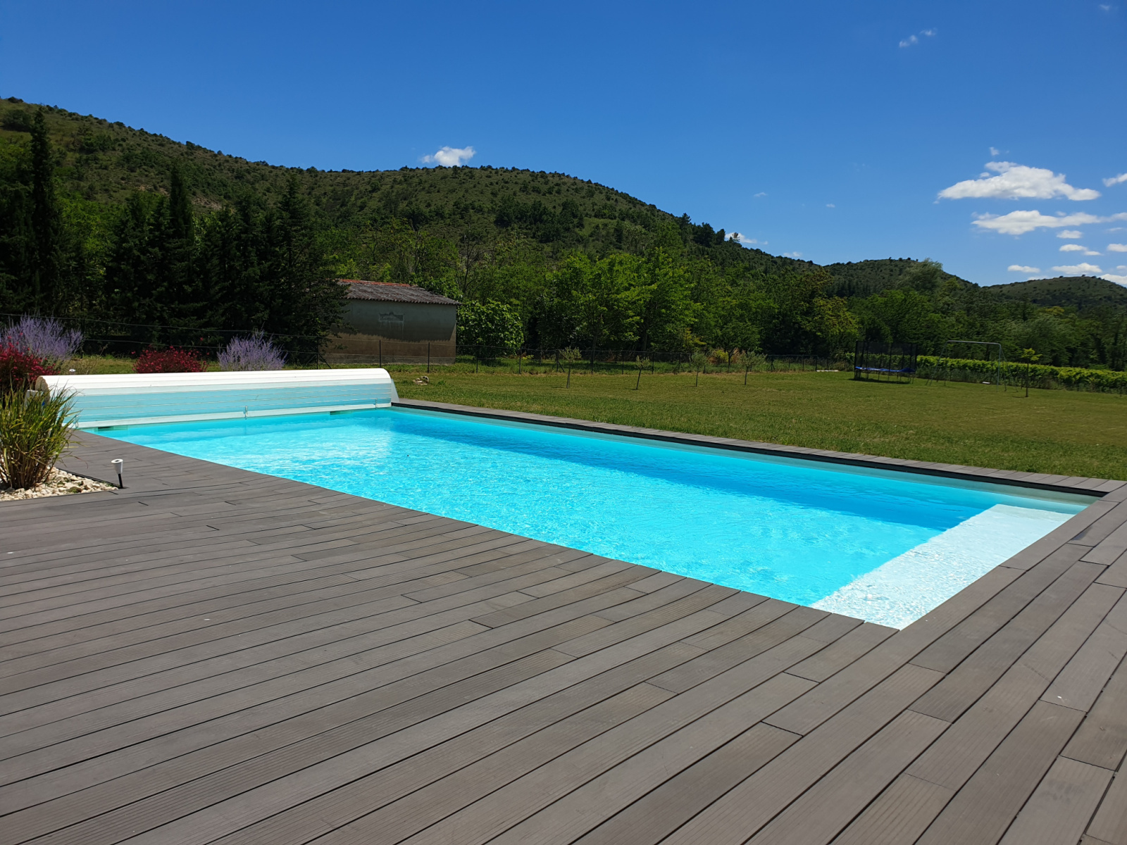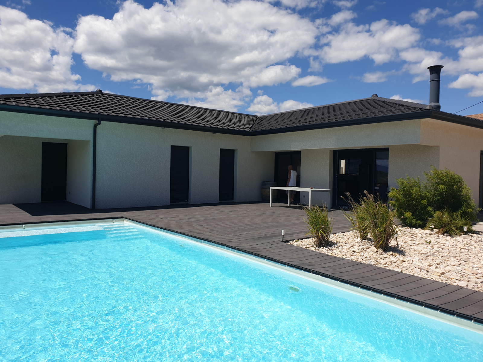 2 VILLAS NEUVES indépendantes (jumelables) - de plain-pied - grand terrain plat - piscine chauffée - hammam - sauna - au sud d’AUBENAS - en ARDECHE méridional - accueil possible - extension possible - accès en vélo par la voie verte