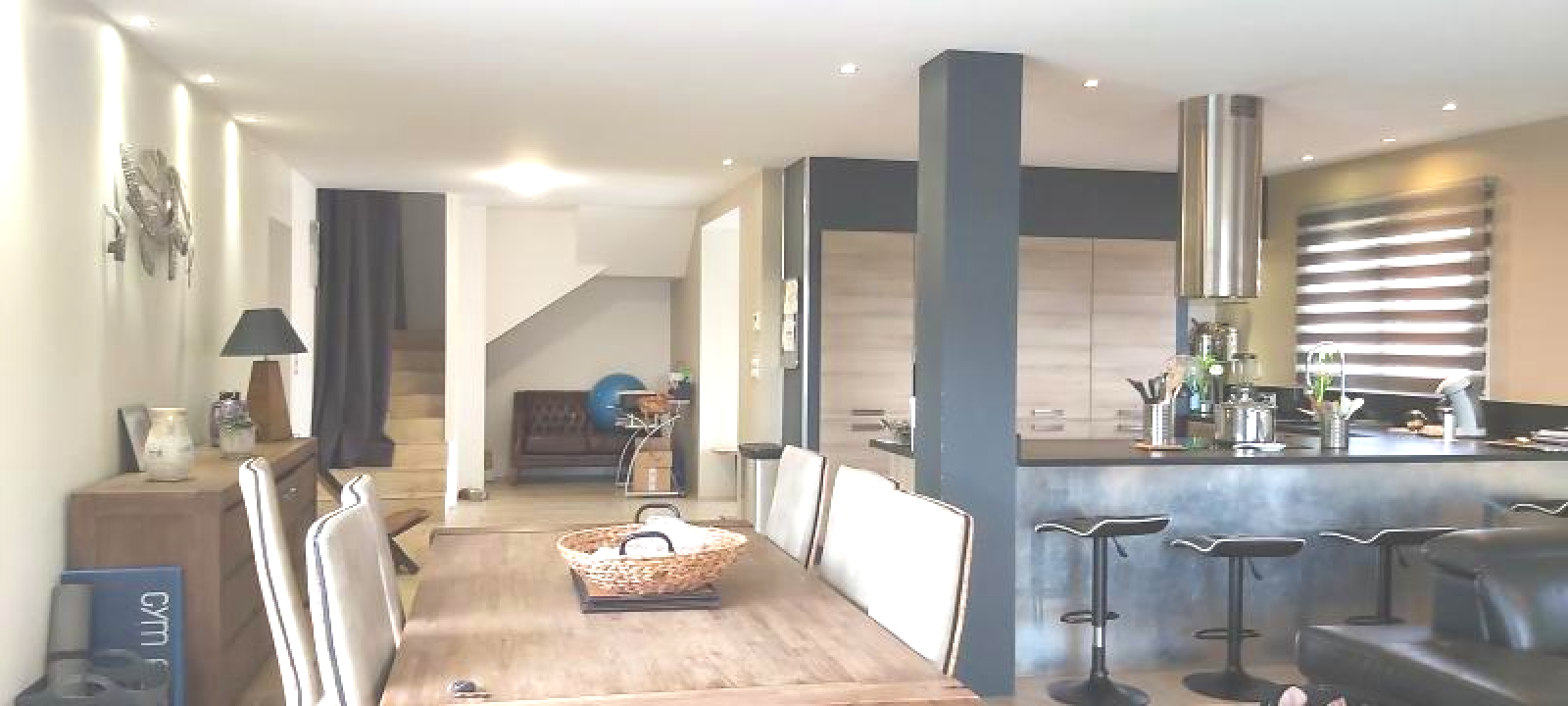 Cette grande maison, très bien entretenue avec de beaux matériaux, vous propose dans un environnement agréable et calme, une belle entrée , qui dessert une spacieuse pièce à vivre de 52 m² , ( poele à granule) son espace cuisine moderne, équipé et aménagé .