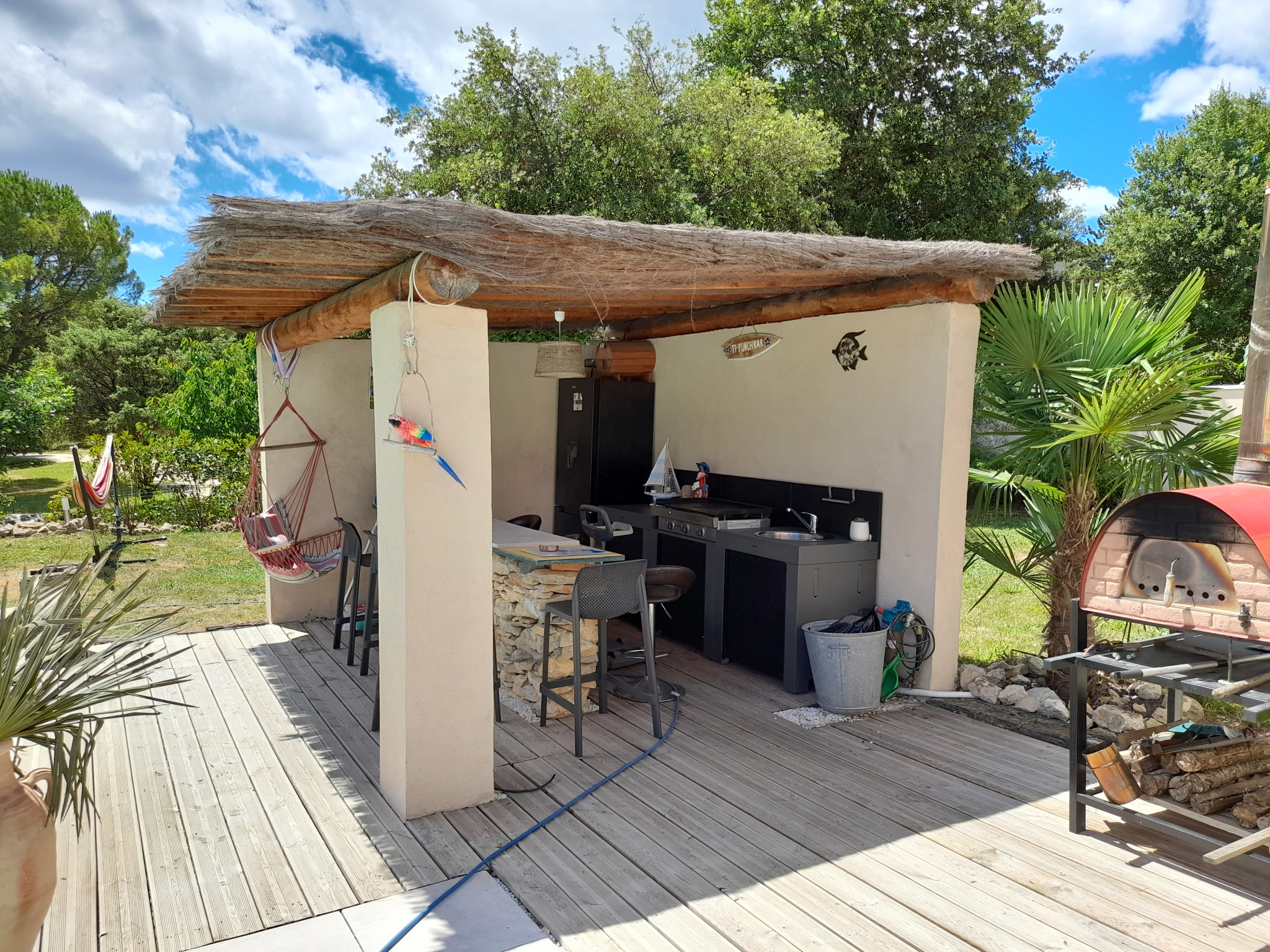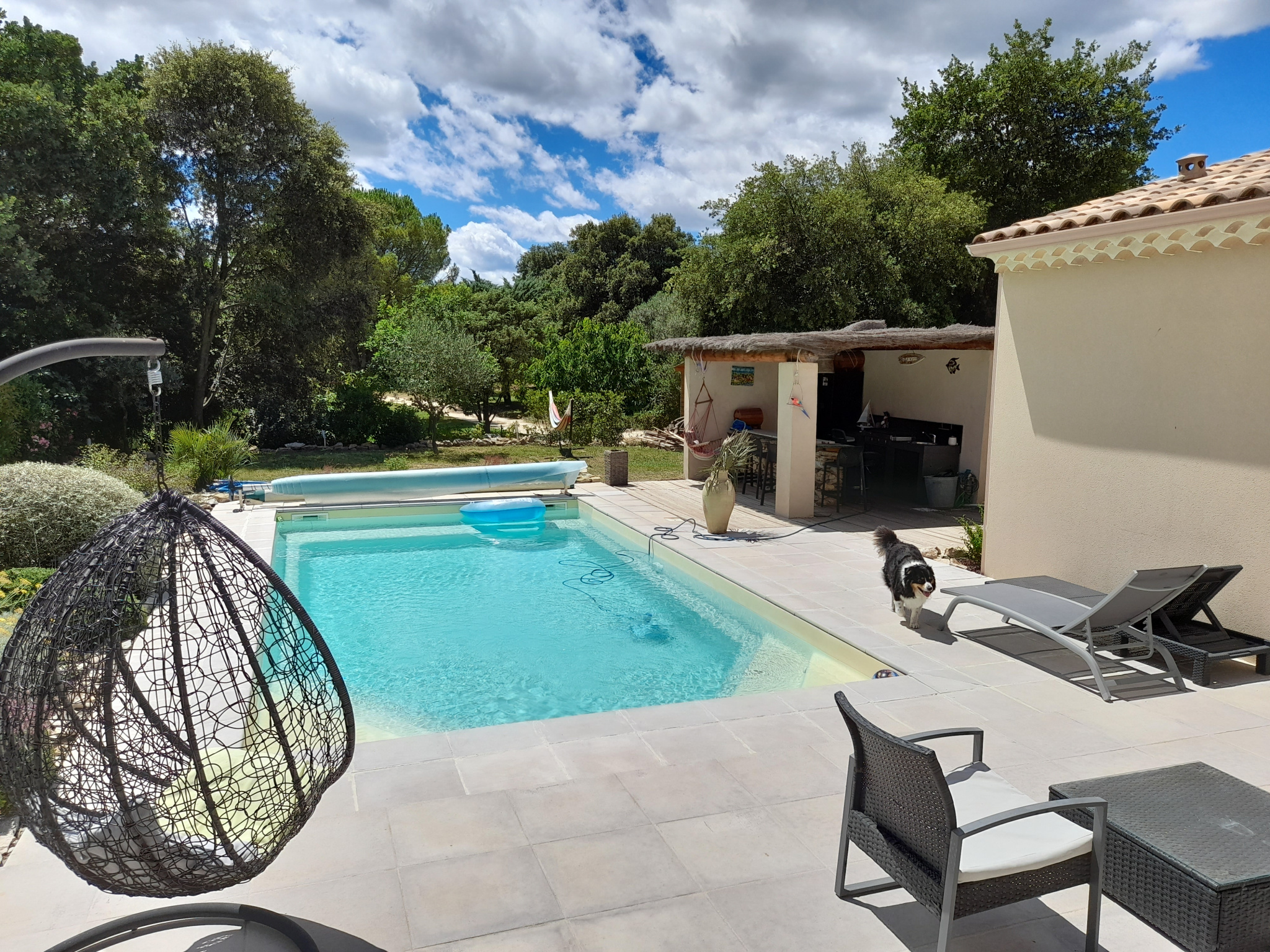 La 2 ème terrasse de 20 m² ,exposée au Sud vous donnera accès à la piscine de 8x4 et son pool house équipé en cuisine d'été.