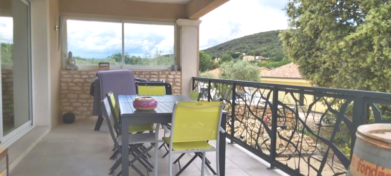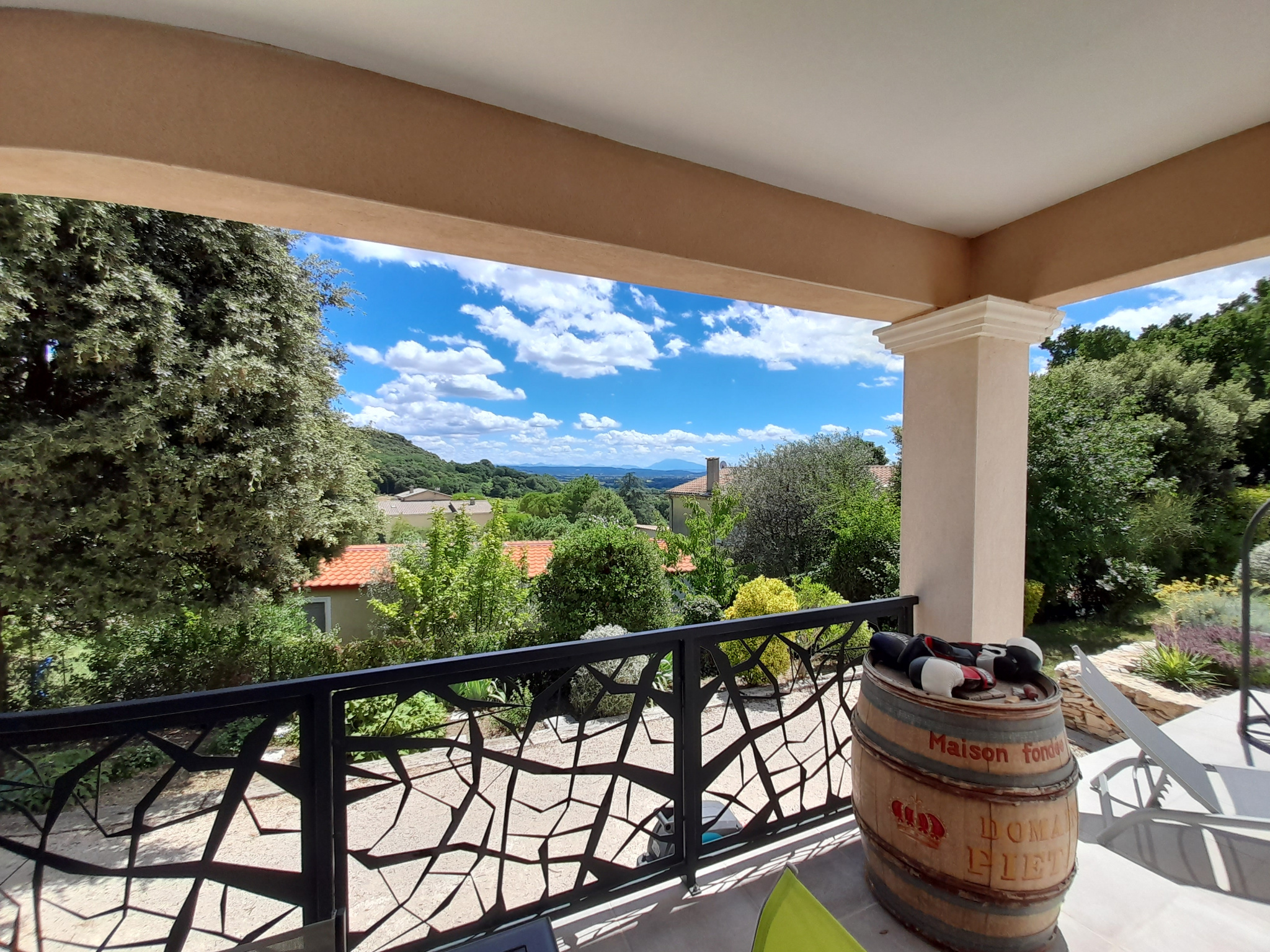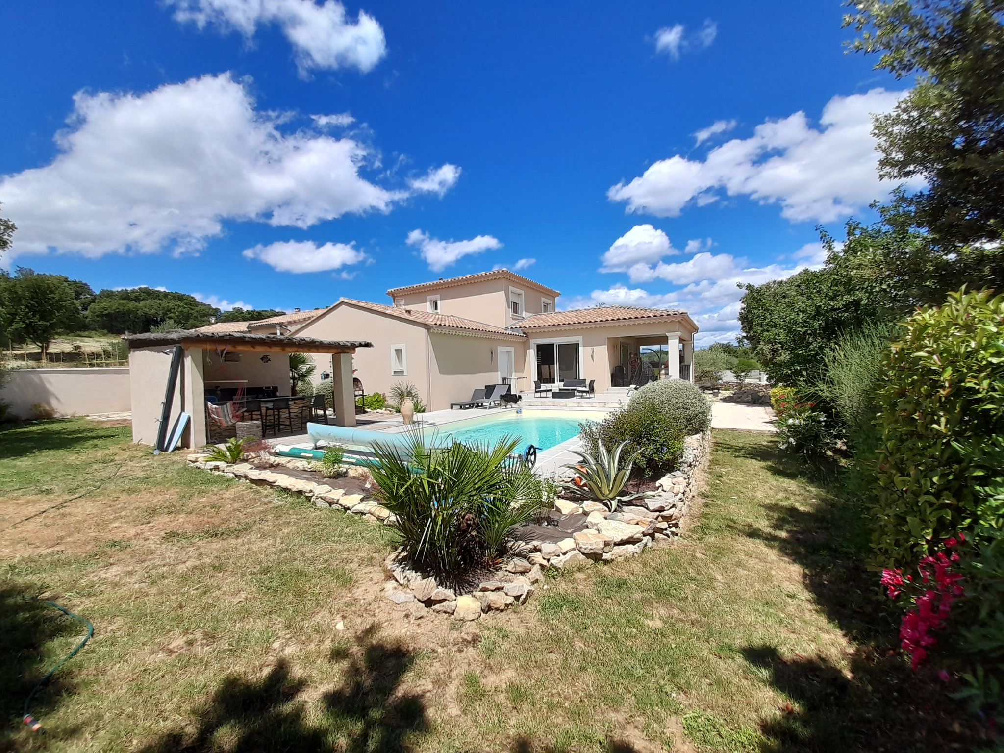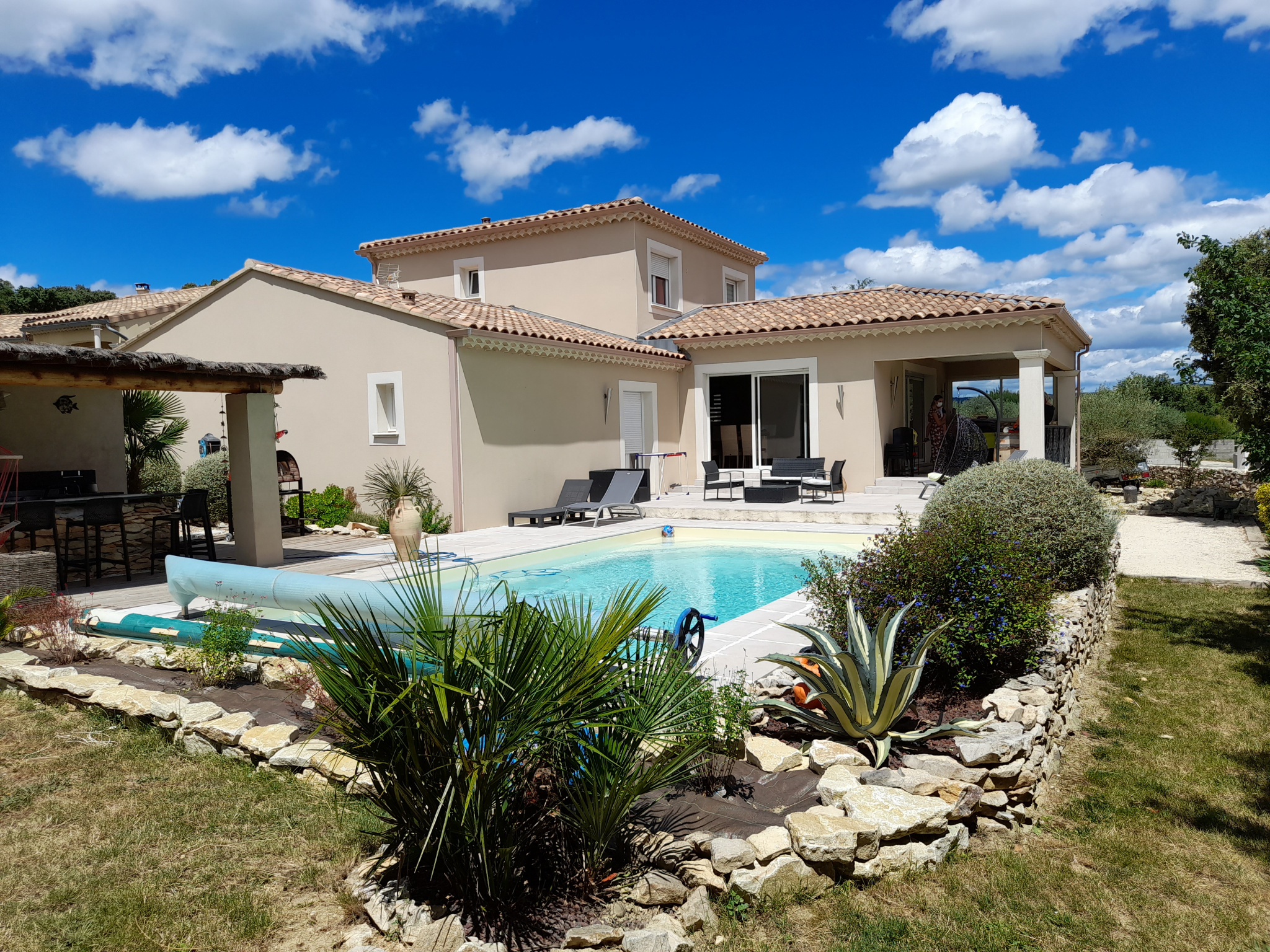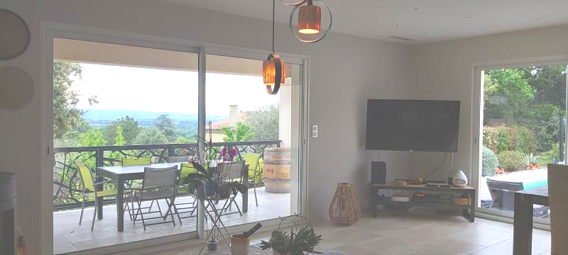 Sur les hauteurs de Saint Montan, à 3 kms de Bourg St Andéol, belle villa comtemporaire de 151 m² habitable sur 1001 m² de terrain clos et arboré, avec vue panoramique.