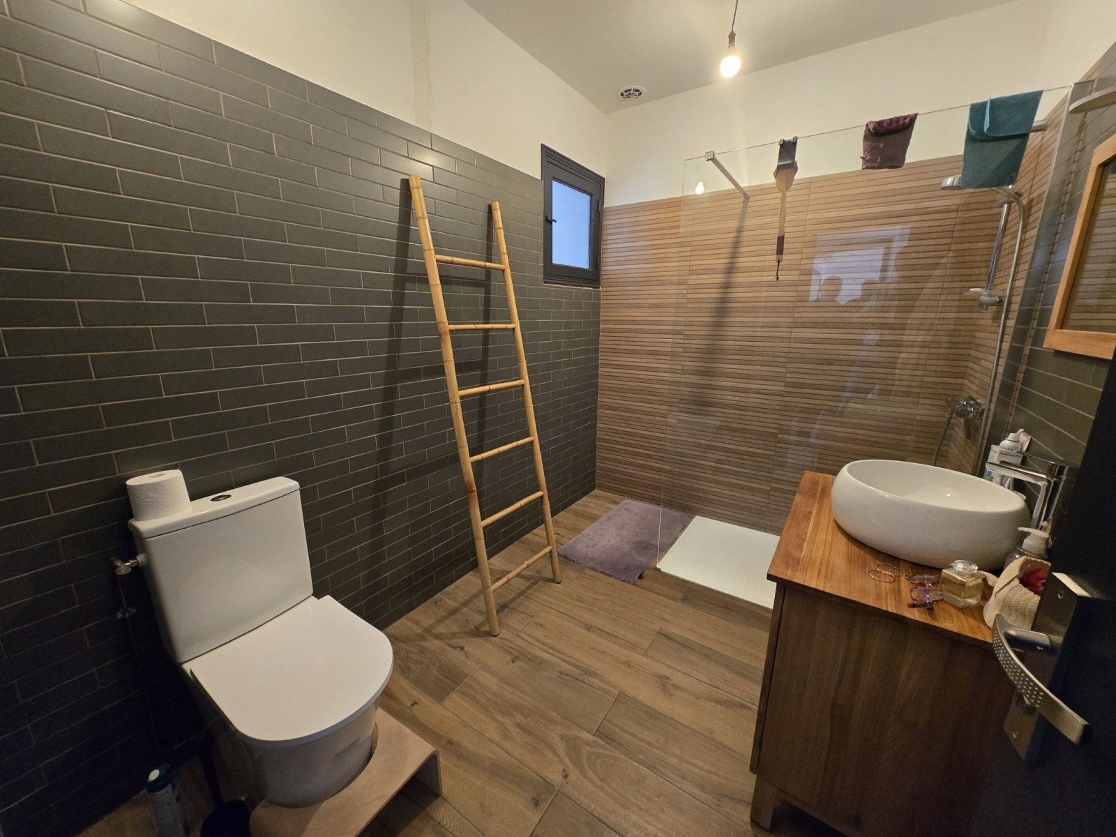 La maison dispose de 4 chambres, d’un bureau, de 2 salles d’eau et de 2 WC, idéale pour une famille. Confort assuré grâce au double vitrage, au chauffage au gaz et à la climatisation.