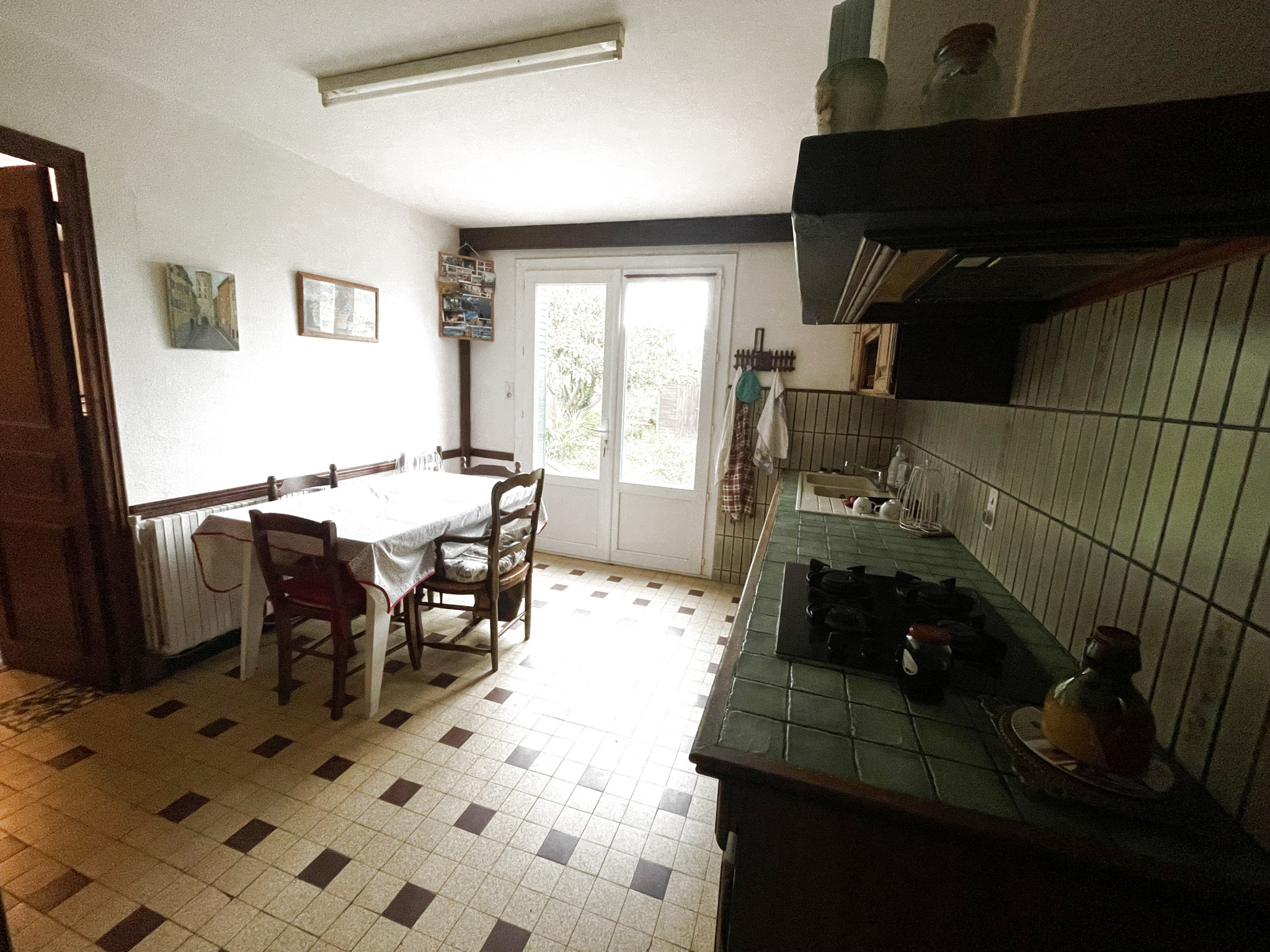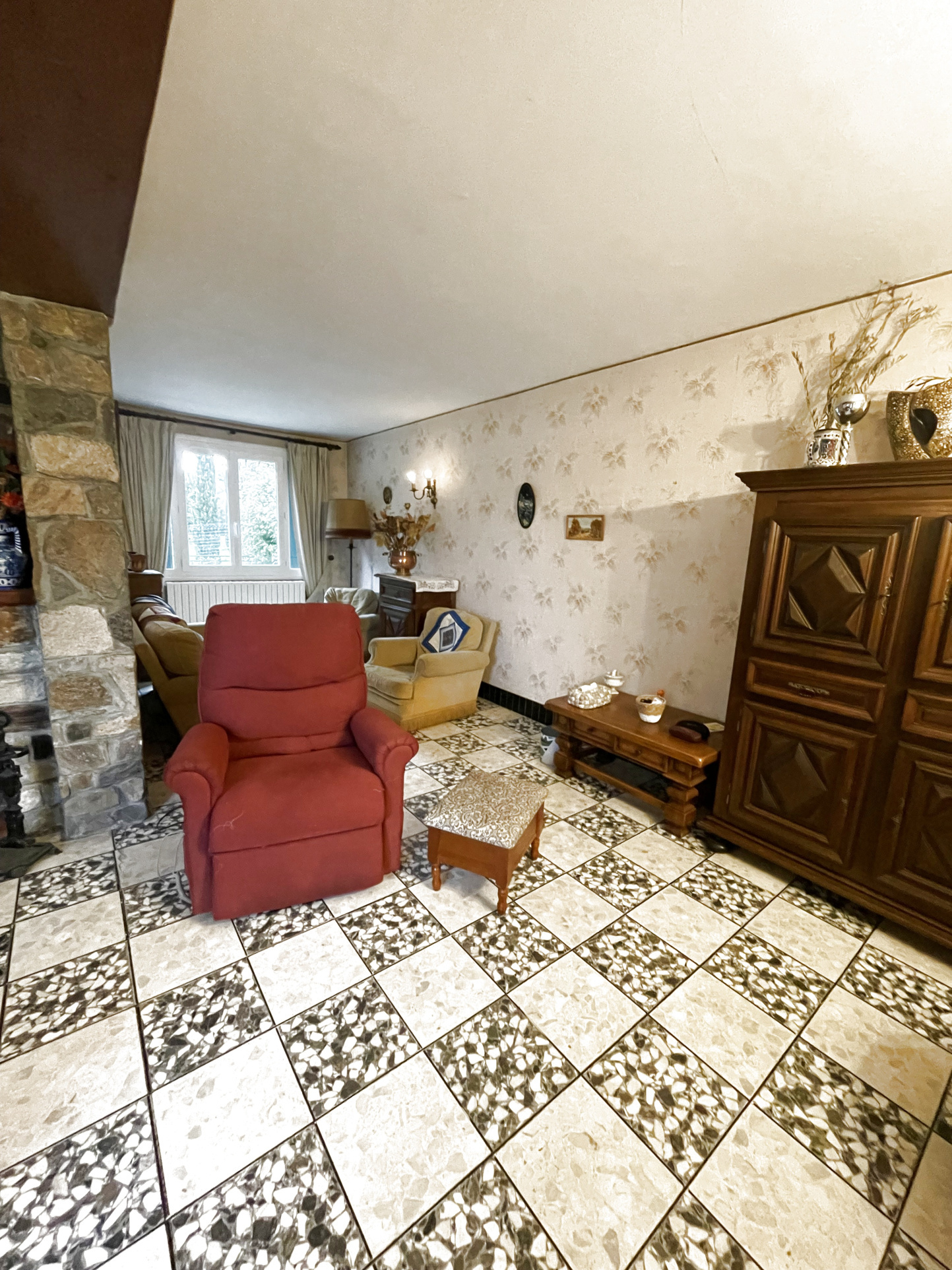 Au rez-de-chaussée, ce bien offre un espace de vie lumineux avec un séjour/salle à manger doté d’une cheminée, une cuisine séparée donnant sur le jardin.