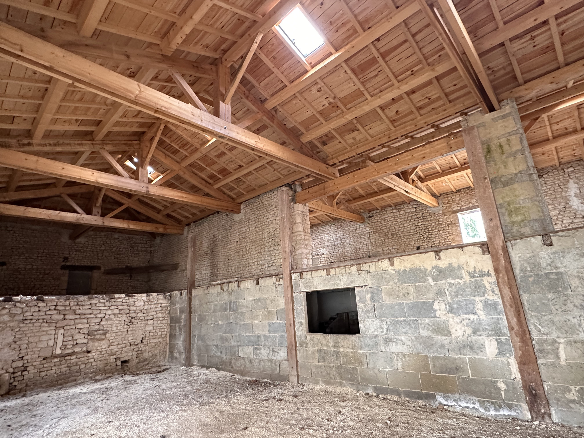 Grand loft au deuxième étage avec sa charpente apparente.