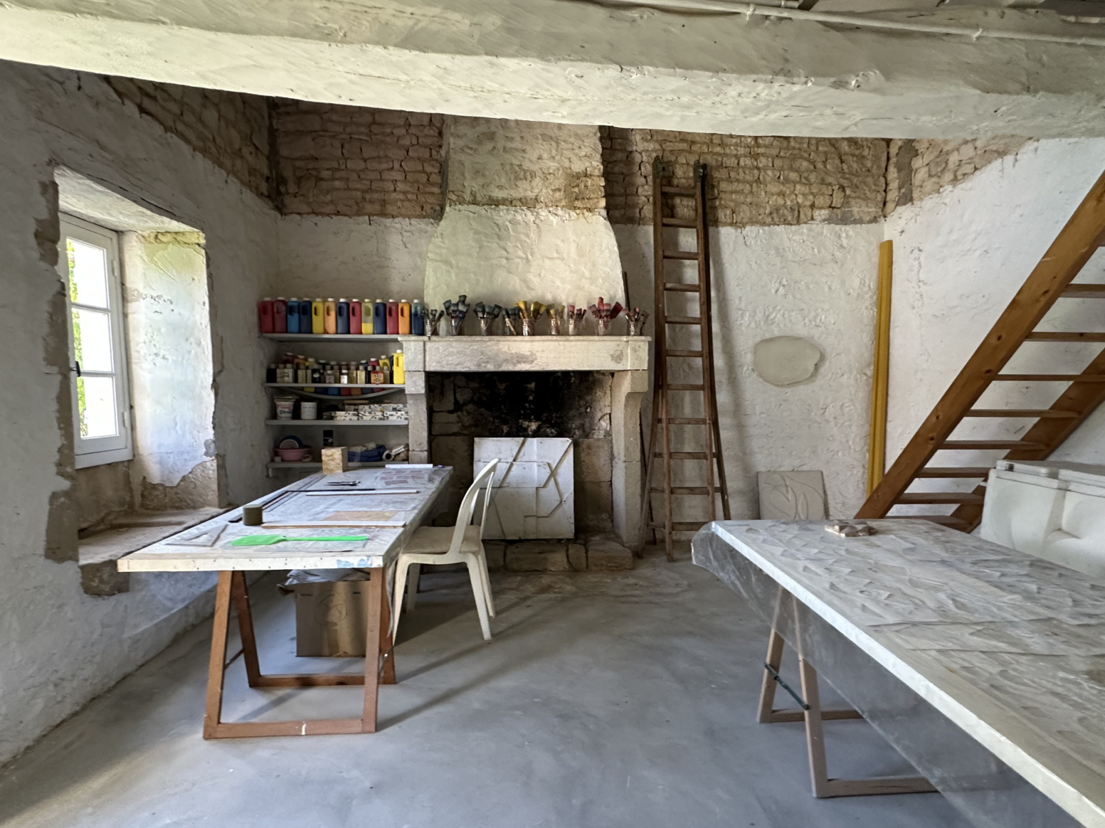 This beautifully authentic charentaise house has a kitchen and three reception rooms, pantry and WC on the ground floor and on the first floor a bathroom and WC, 4 bedrooms one of which has a washbasin and shower. There is a workshop and also a separate little house which has been used as an artist studio but could be renovated to make a cute cottage.