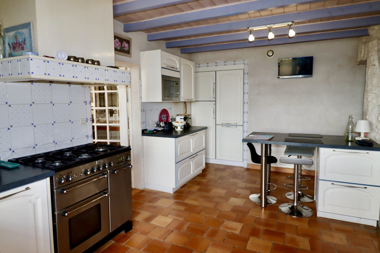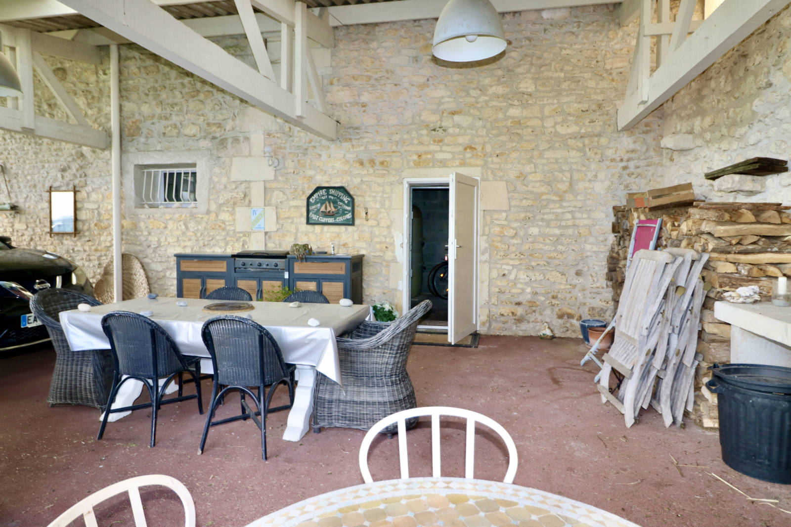 Il s’agit d’un bien particulièrement rare surtout dans ce bel état. La bâtisse principale dispose d’une vaste cuisine aménagée et équipée avec de l’électroménager haut de gamme, ayant de chaque côté les accès vers la salle à manger et le salon avec cheminée insert.