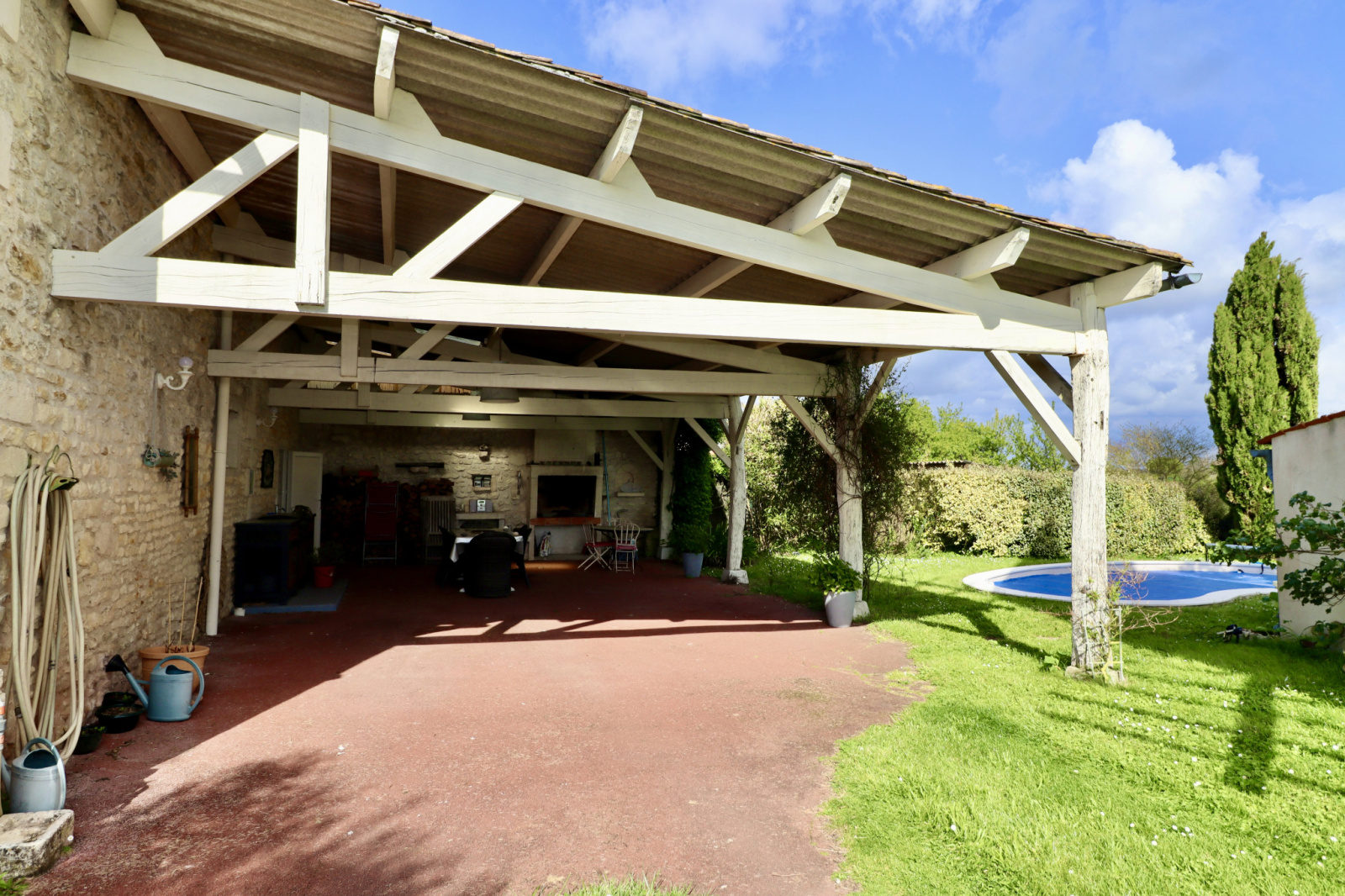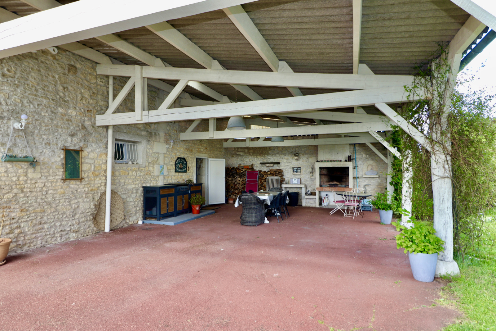 Deux qualités supplémentaires pour cette maison : son immense garage prolongé par une buanderie et surtout sa varangue tout aussi grande pour les repas d’été à l’ombre, près du barbecue.