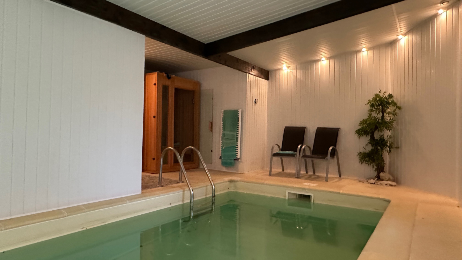 Bien que la roue du moulin ait disparu, le canal d'amenée subsiste, tout comme le charme de la propriété. La maison a été magnifiquement rénovée avec un grand savoir-faire, notamment en menuiserie ! Spacieux salons et chambres, et… une piscine intérieure chauffée avec sauna.
