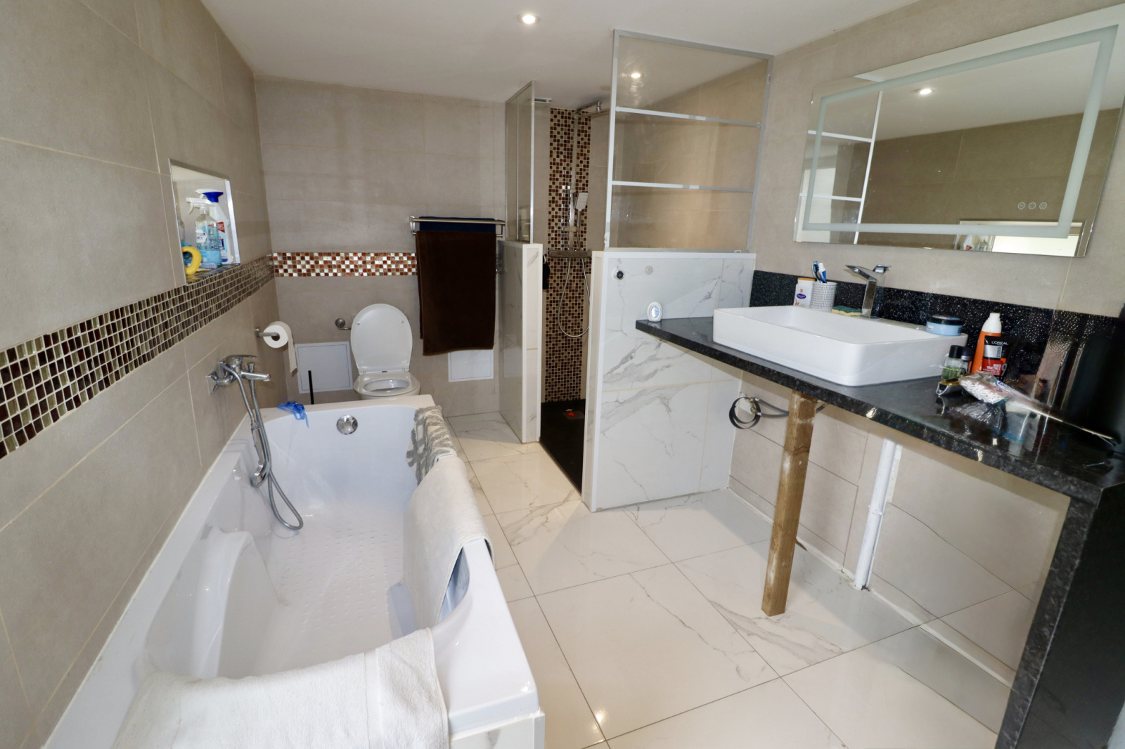 Toujours au rez-de-chaussée, une spacieuse suite parentale de plus de 30 m² vous attend, comprenant un dressing ainsi qu’une salle d’eau avec douche et baignoire, pour un confort optimal.