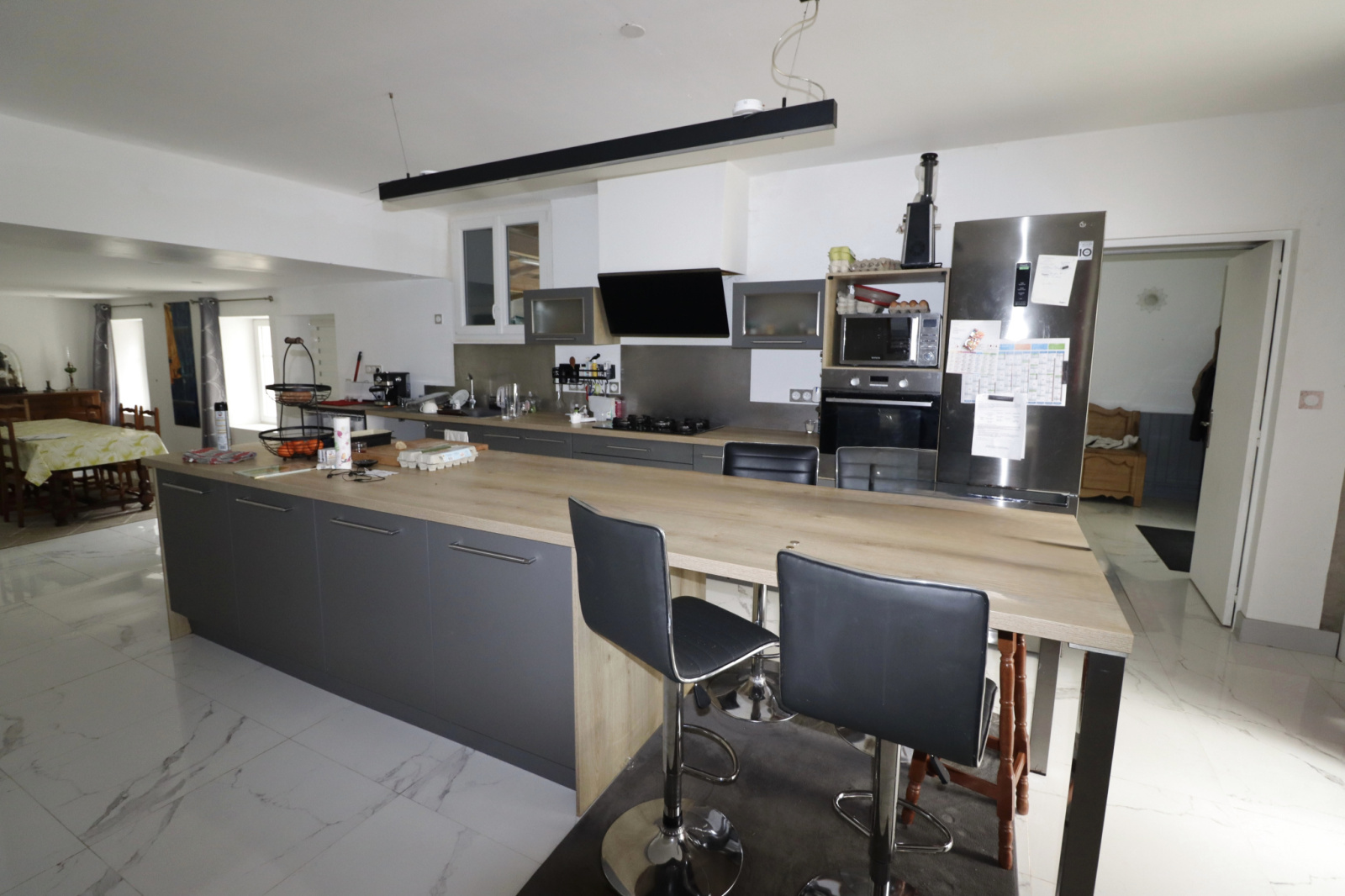 Vous découvrirez un vaste séjour d’environ 45 m² avec cuisine ouverte, idéal pour des moments de convivialité. Dans son prolongement, une agréable salle à manger vient compléter cet espace chaleureux.
