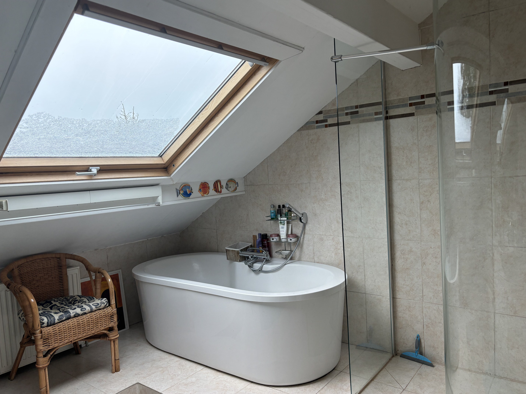 Le toit est en bon état, les fenêtres sont à simple vitrage et la maison est équipée de la fibre optique. Les hauts plafonds et les fenêtres authentiques confèrent beaucoup de caractère à la maison.
