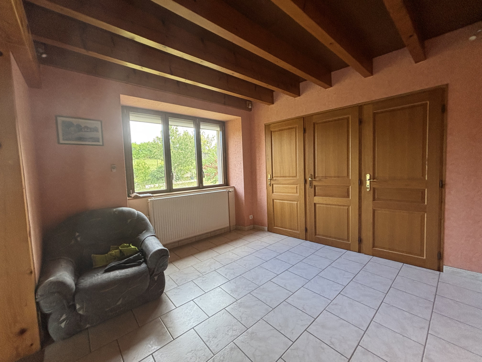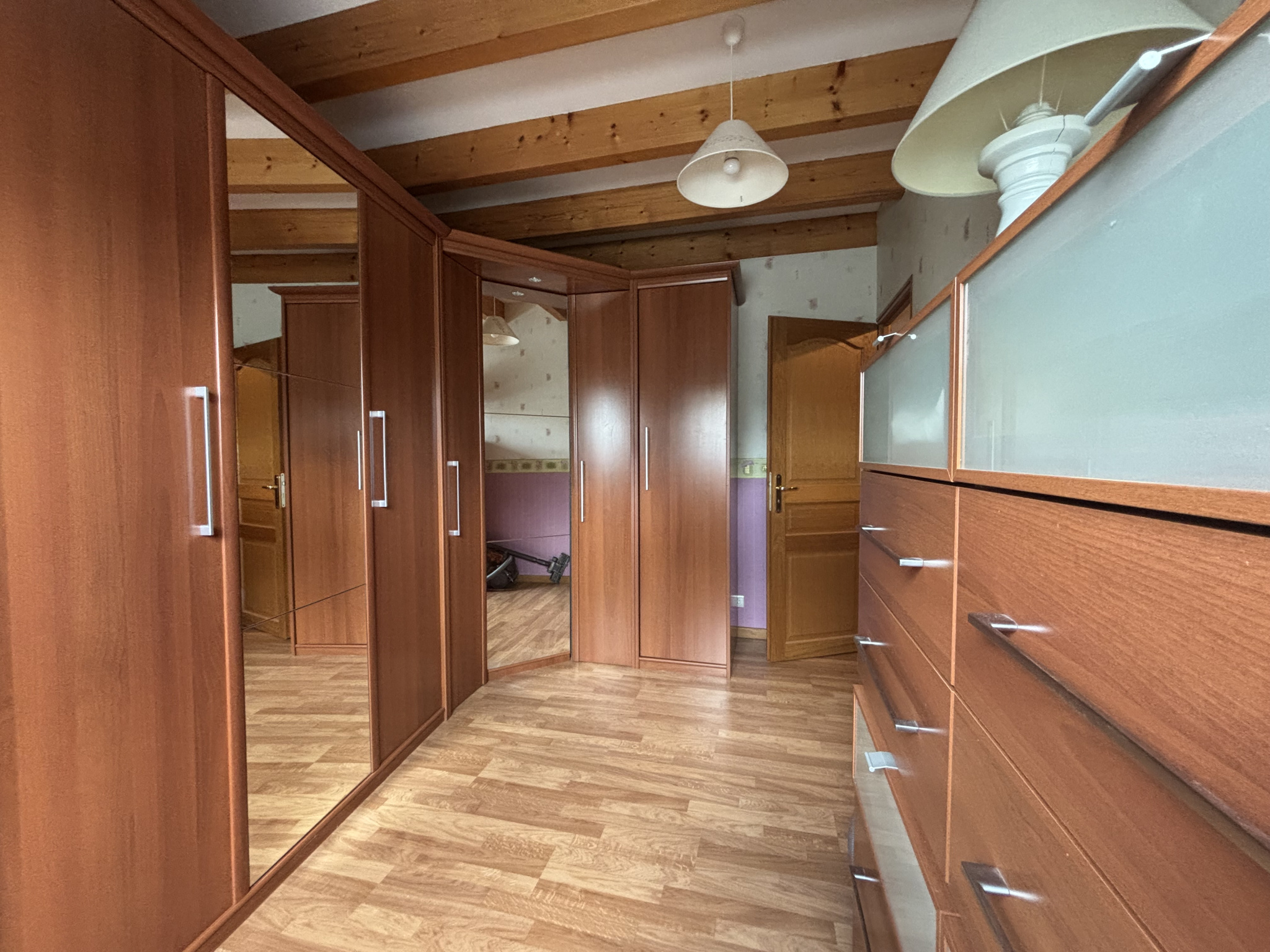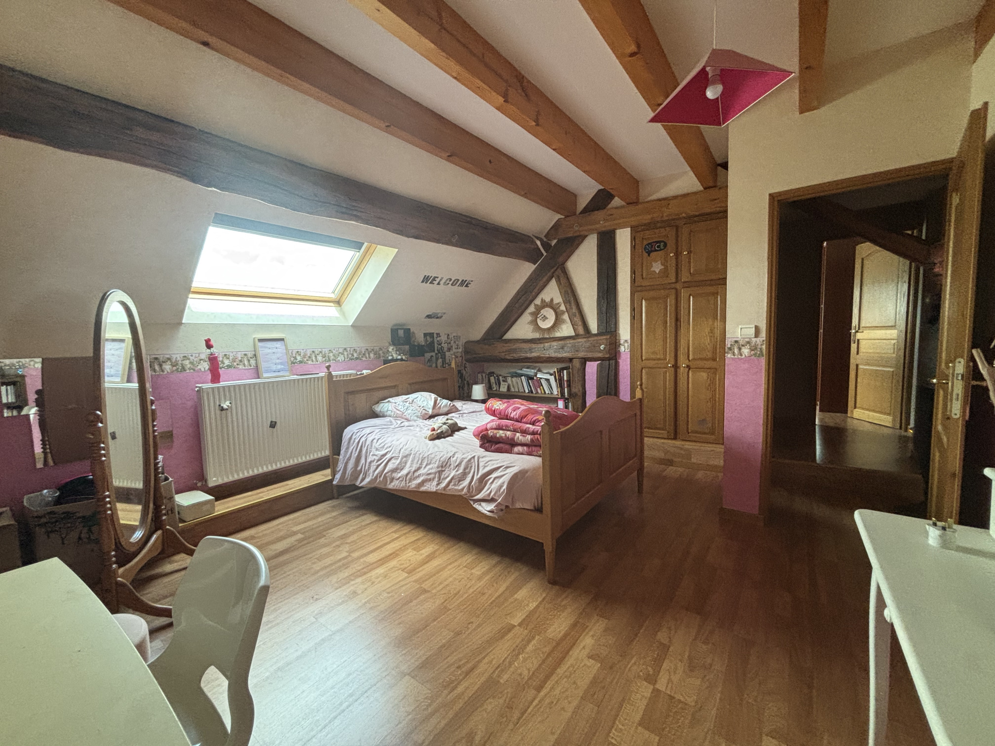 Au 2 éme étage , un palier avec de magnifiques poutres dessert trois chambres de 17m² à 20m² , un dressing de 11m² et des toilettes avec lavabo.( escalier en chêne massif ) .