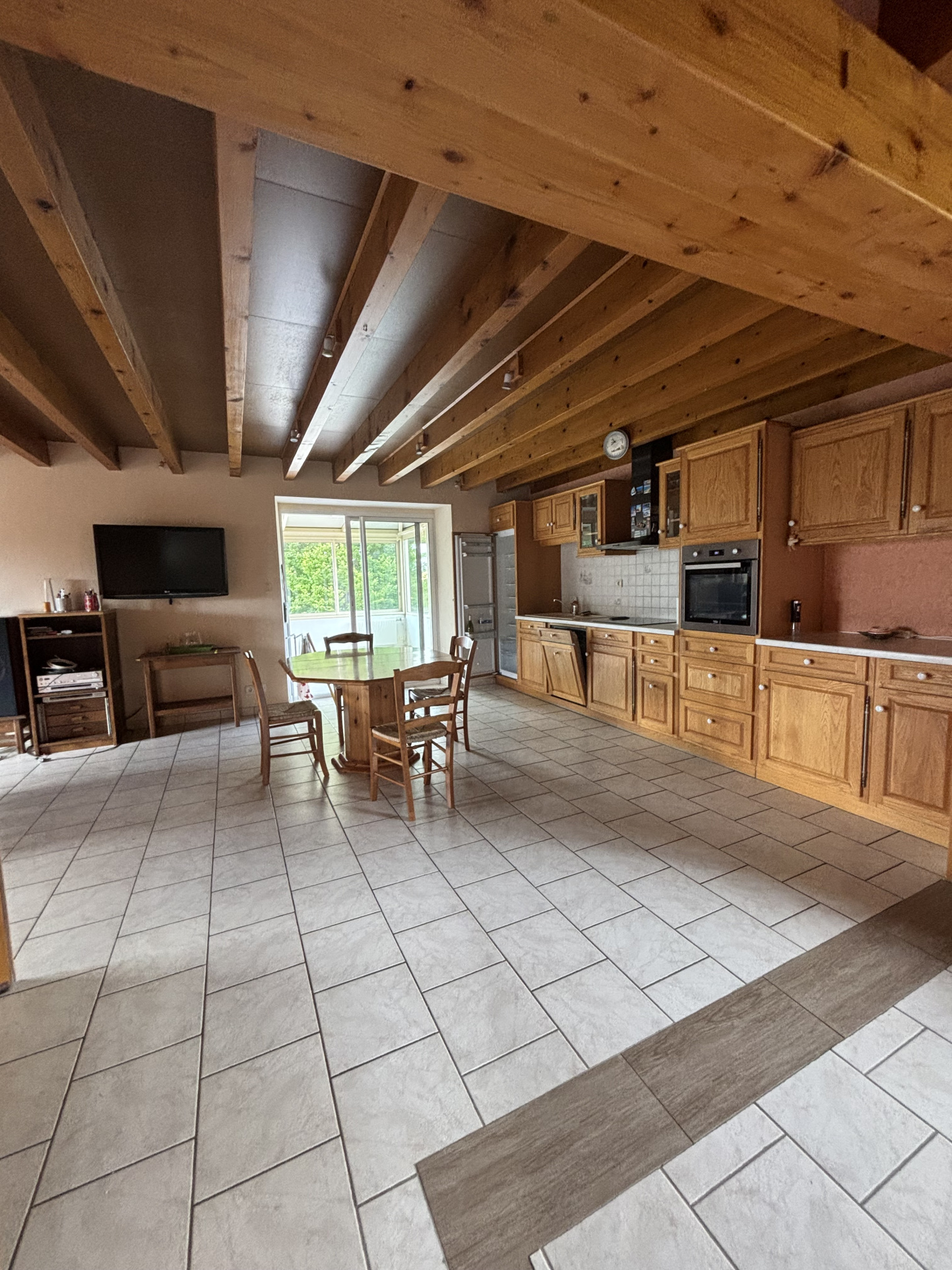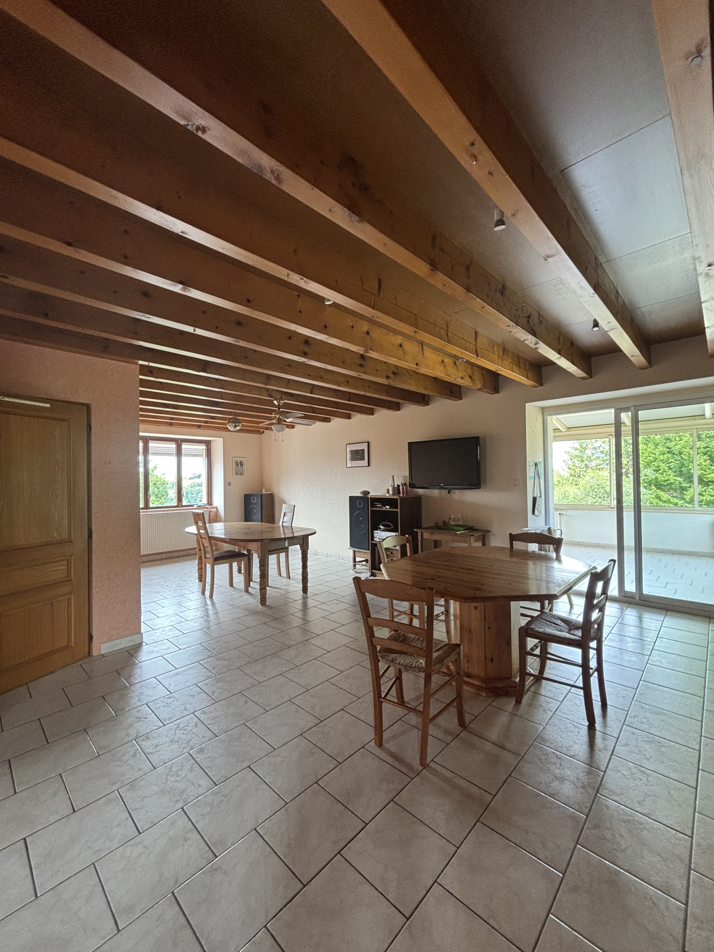 La seconde maison, actuellement louée, comprend :une cuisine ouverte de 22m² avec un insert , un salon avec cheminée de 20,48m², un espace machine à laver,;