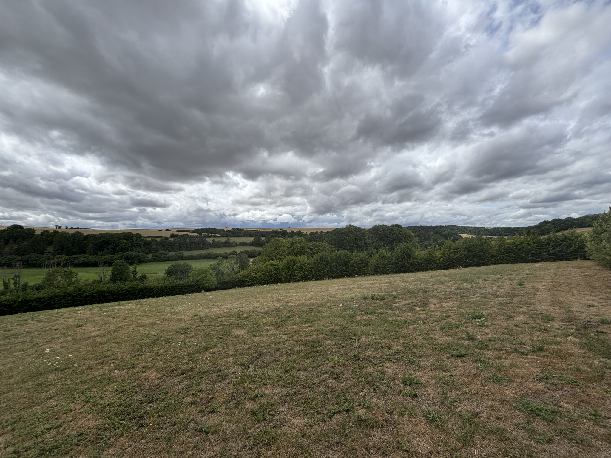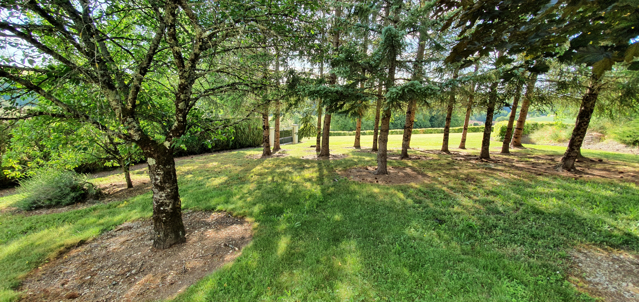 Cour devant et terrain sur l'arrière de la maison avec arbres fruitiers et sapins , une vue sur la plaine sans vis-à-vis, belle sensation de liberté.