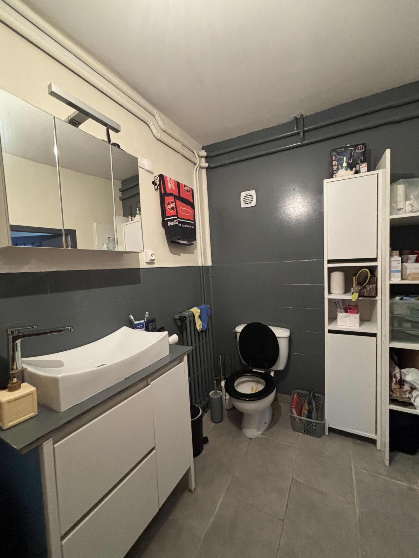 Carrelage au sol, parquet chêne dans les chambres.
