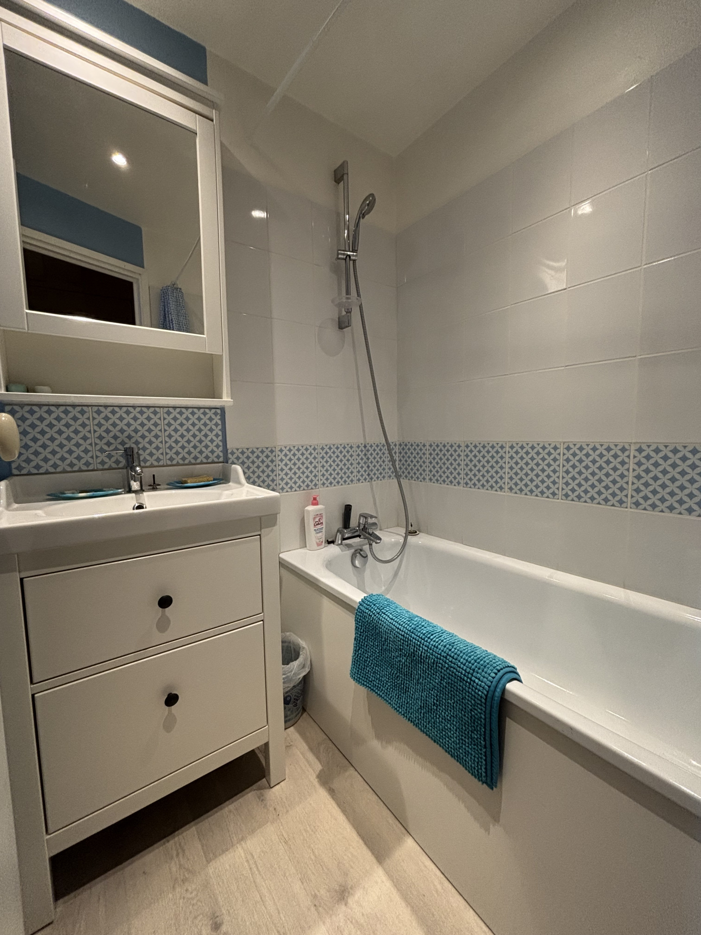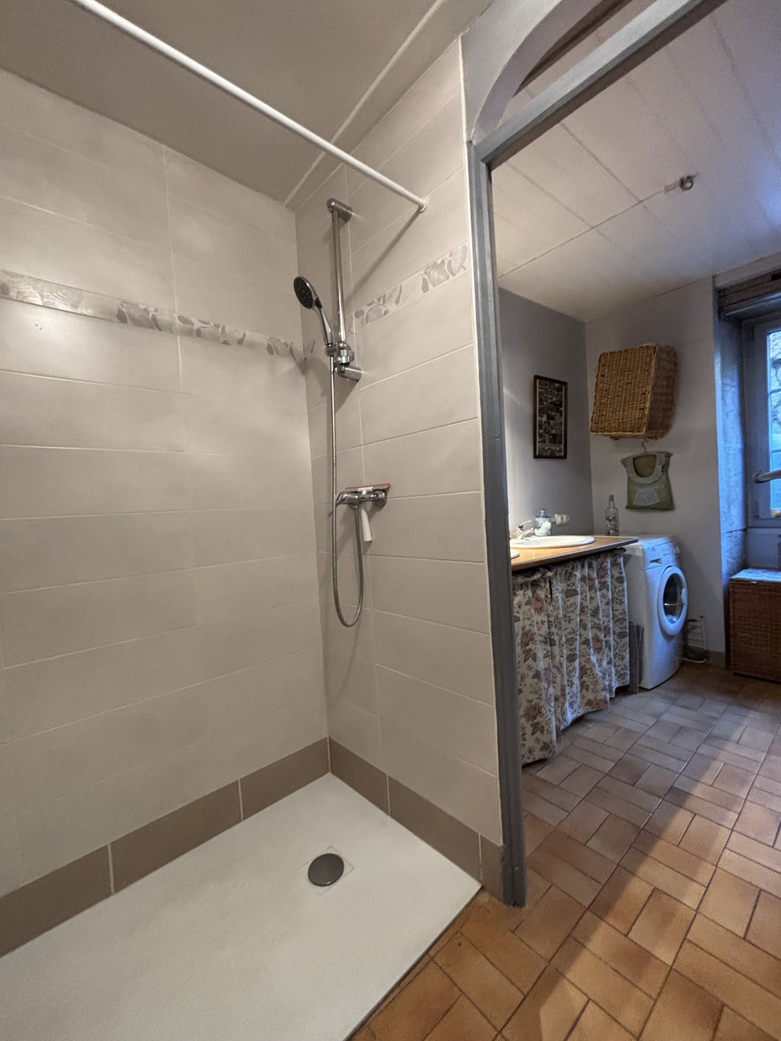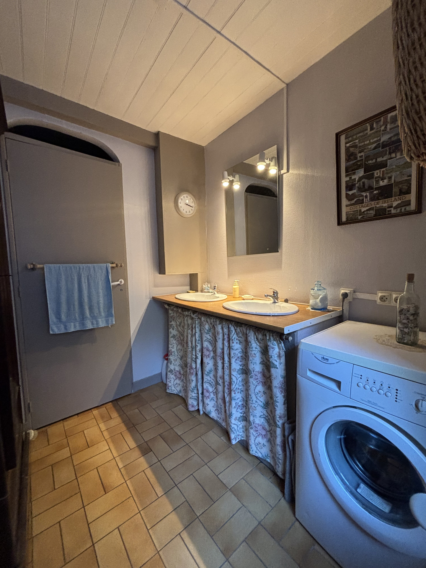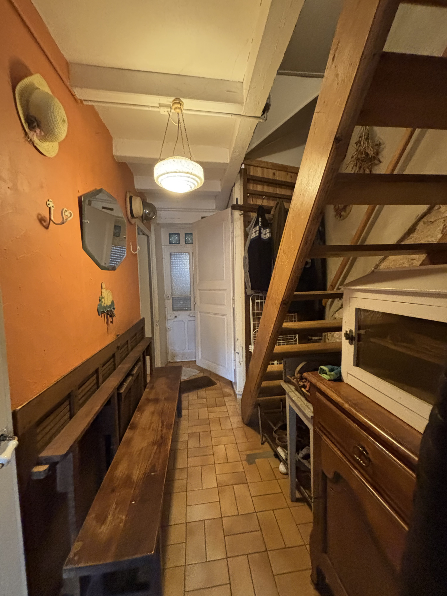 Elle comporte également une salle de bain, un toilette et un coin rangement sous l'escalier;.