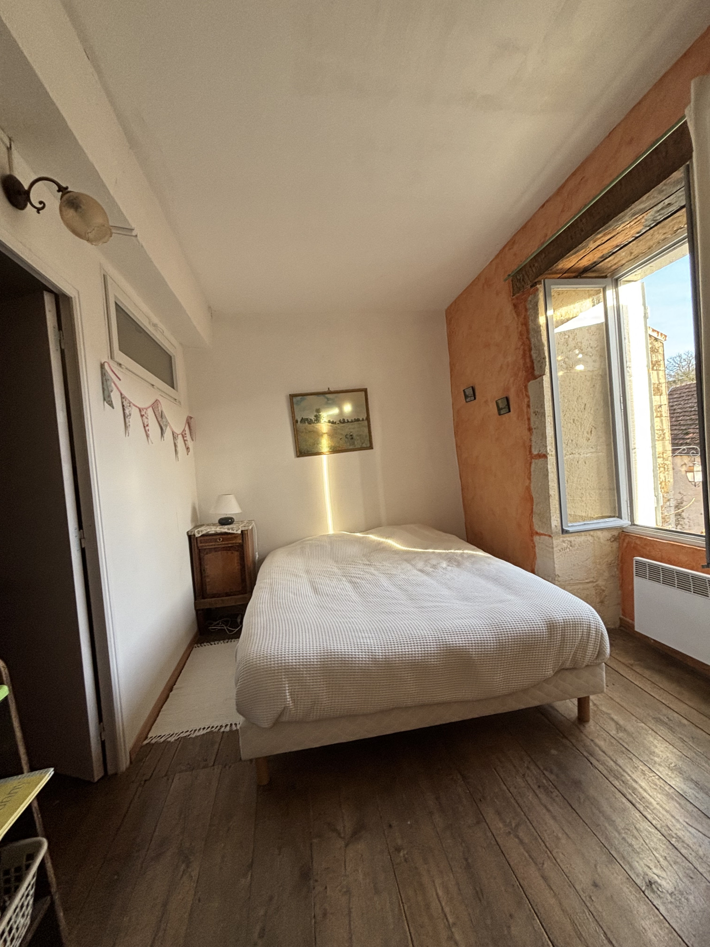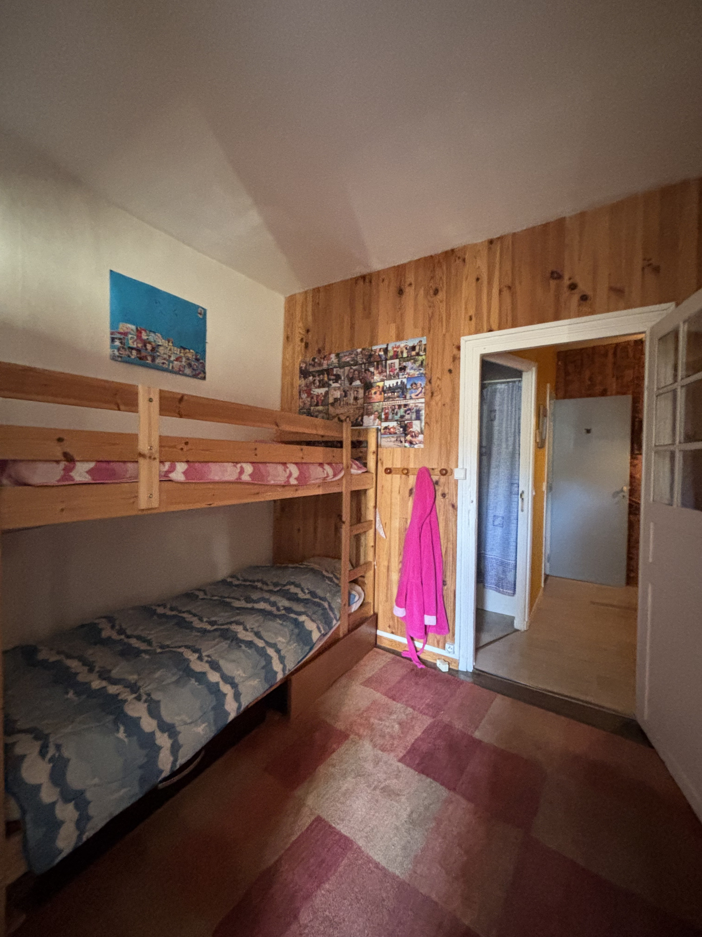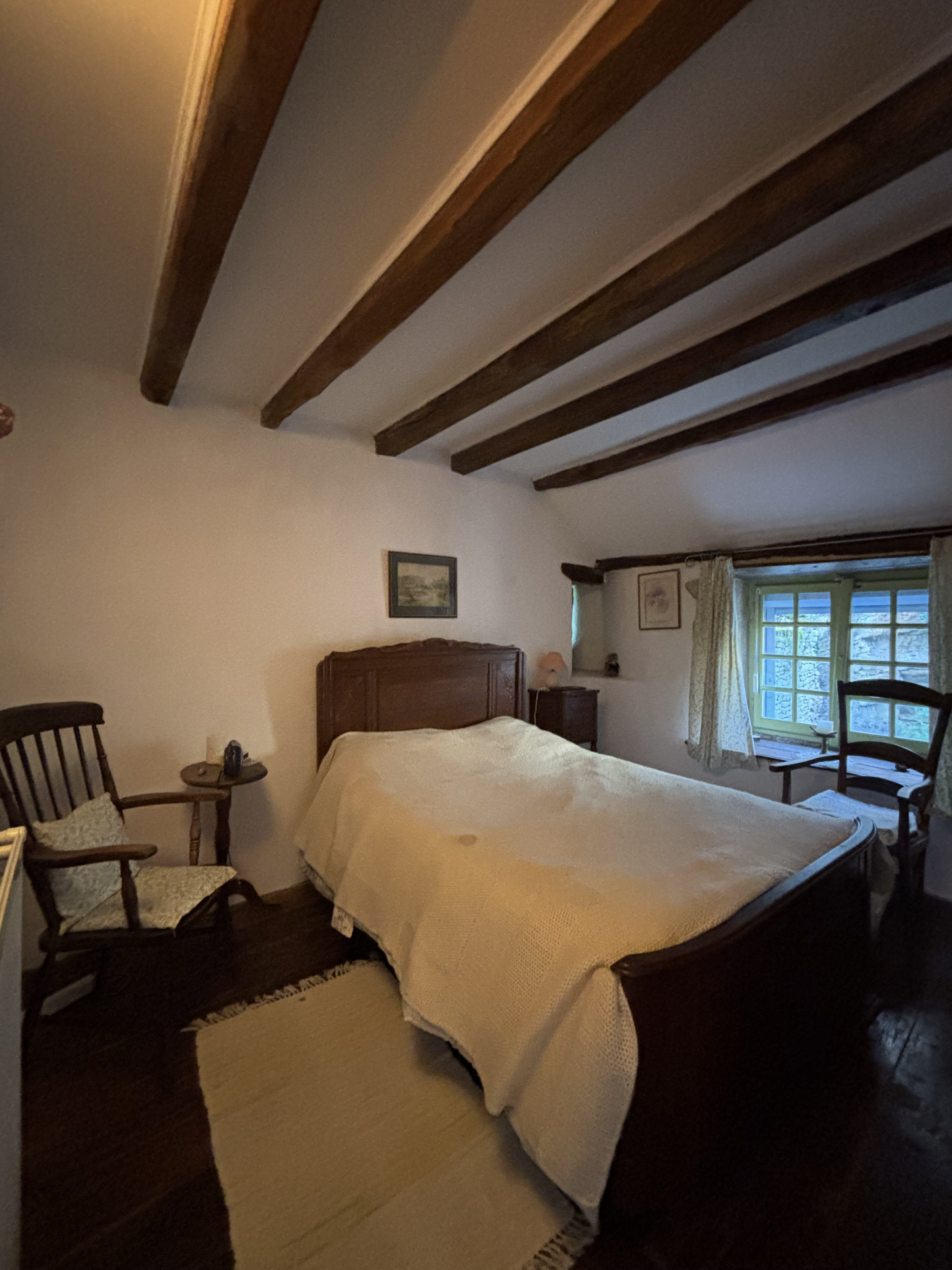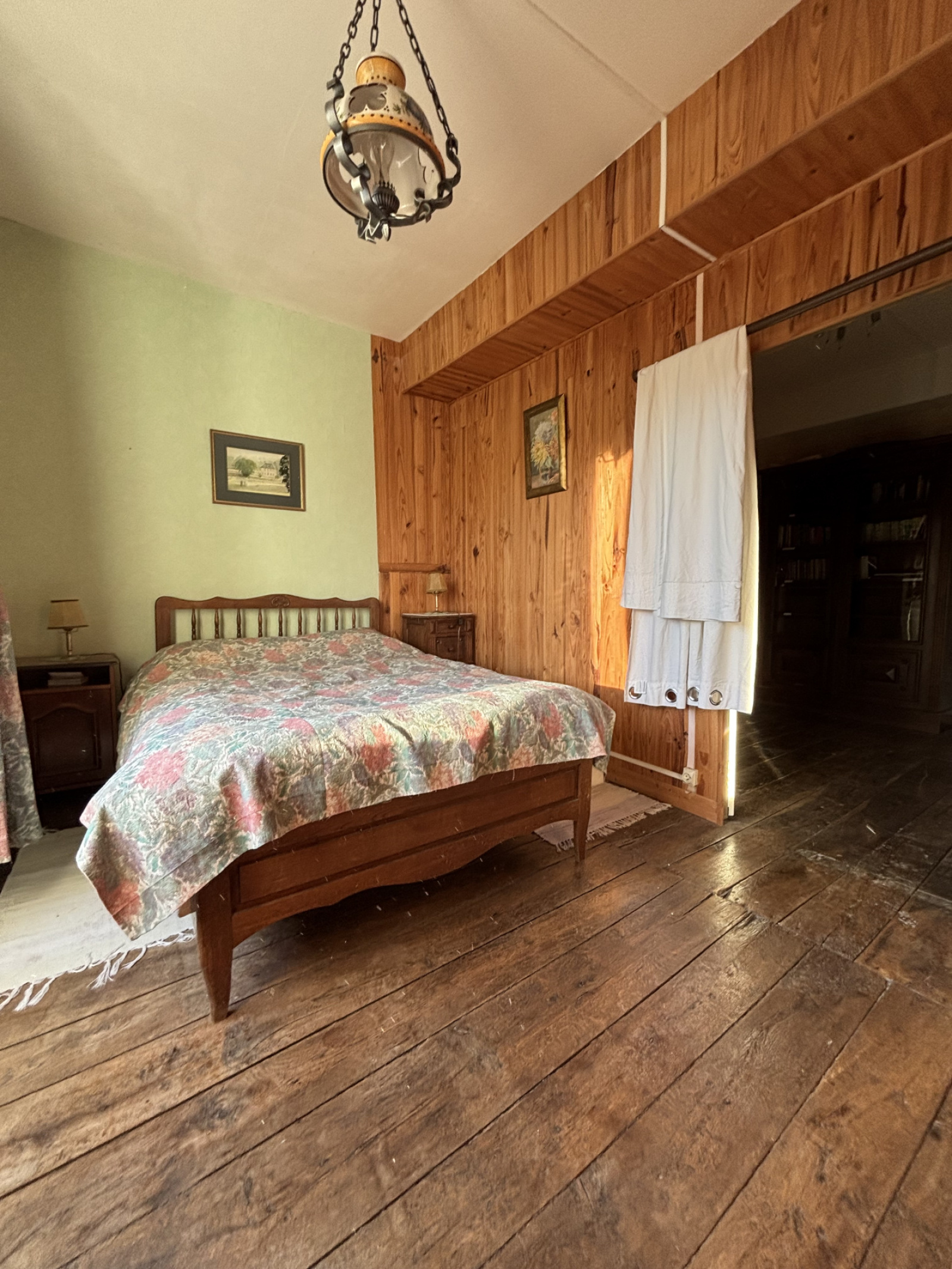 Au premier étage se situent trois chambres dont deux au-dessus de la cuisine avec un espace rangement et une dernière plus grande au-dessus du salon . Surface des chambres de 11m² à 13m²( voir plan) avec parquet d'origine, une salle de bain et toilettes.