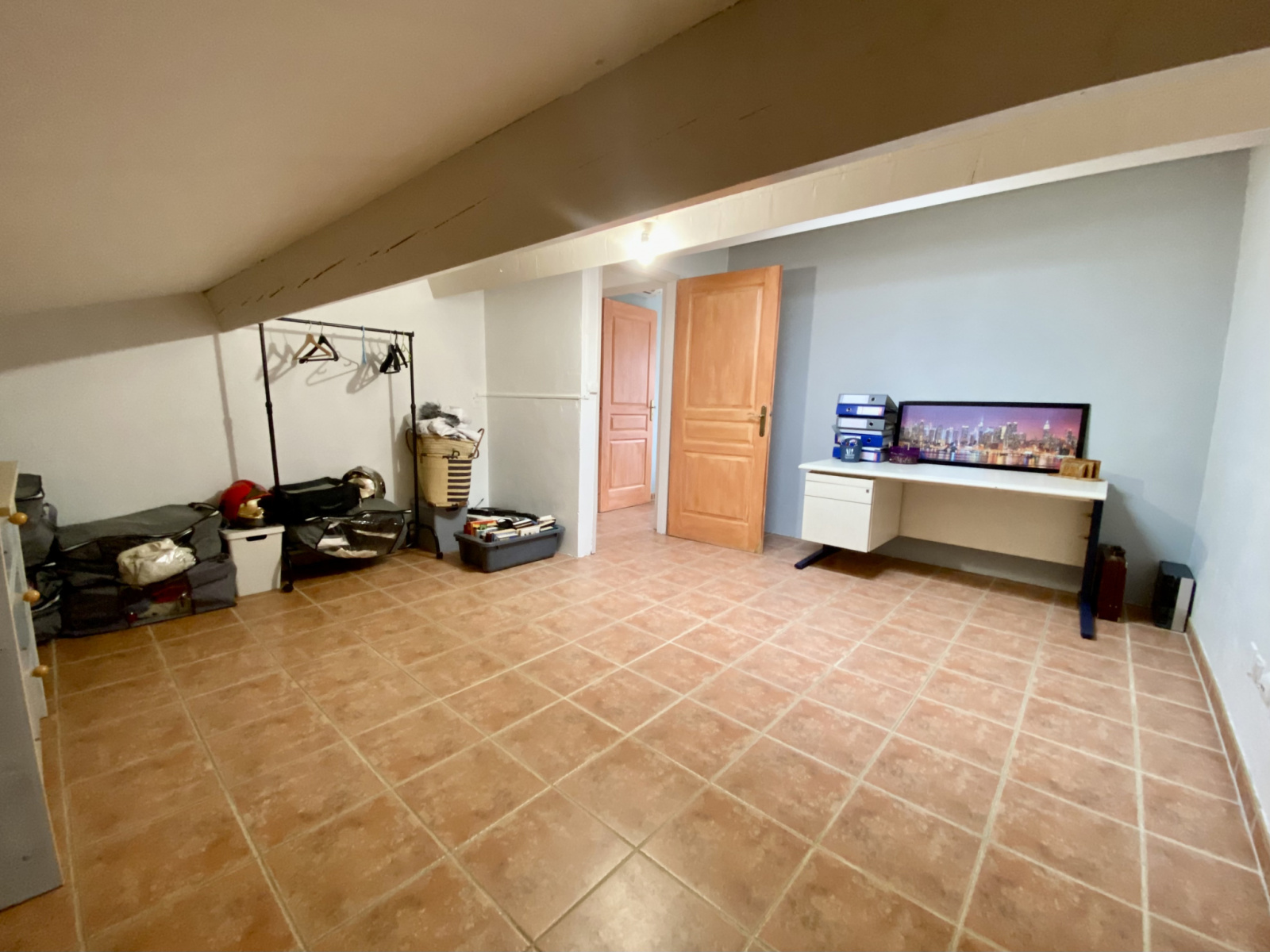 L’étage offre 3 chambres (dont une mansardée) et une salle d’eau avec Wc.
