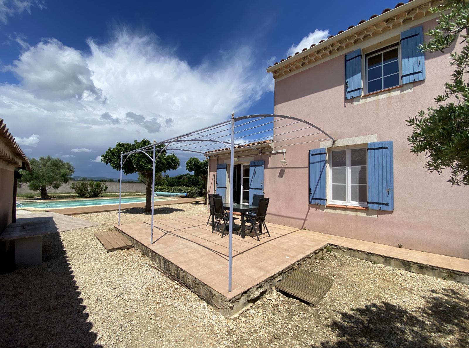 La maison est en bon état, quelques rafraichissements sont à prévoir (peinture d'une chambre, pool house, plage de piscine : quelques planches à repositionner).
