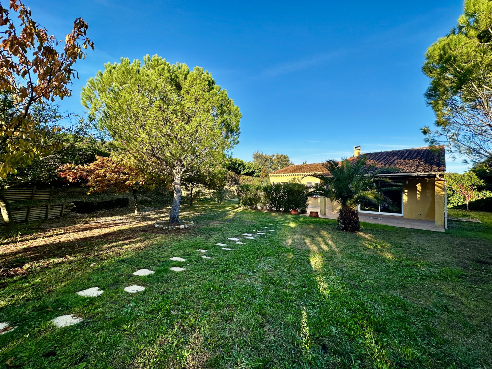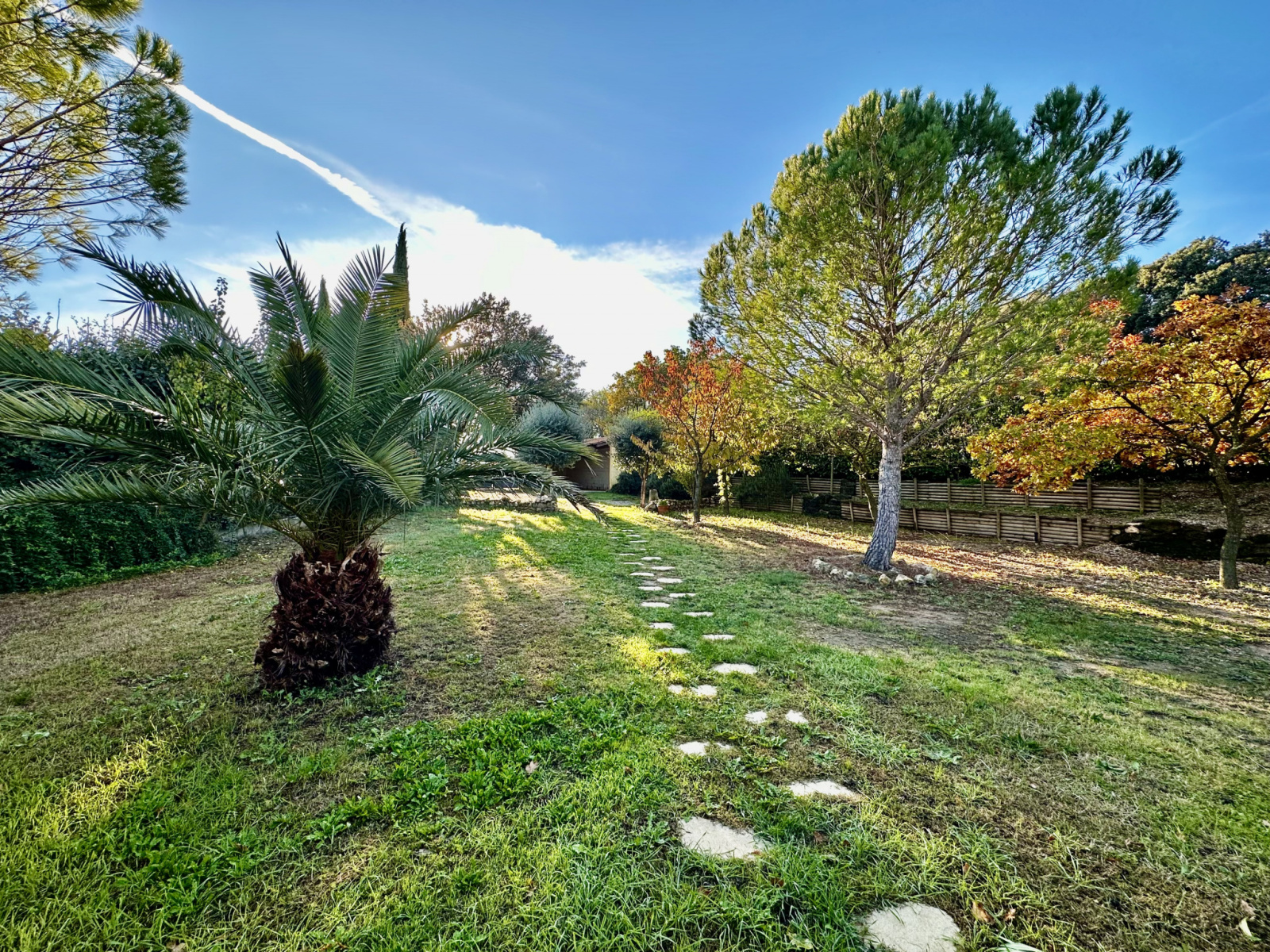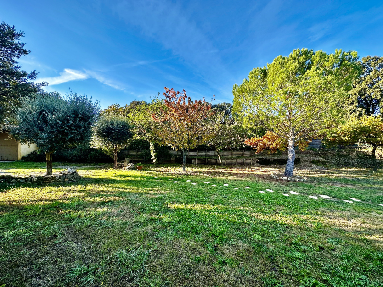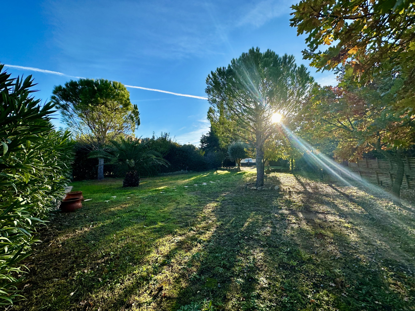 Le terrain généreux de 1043 m² entièrement cloturée est un véritable havre de paix, avec ses chênes truffiers et son jardin richement arboré.