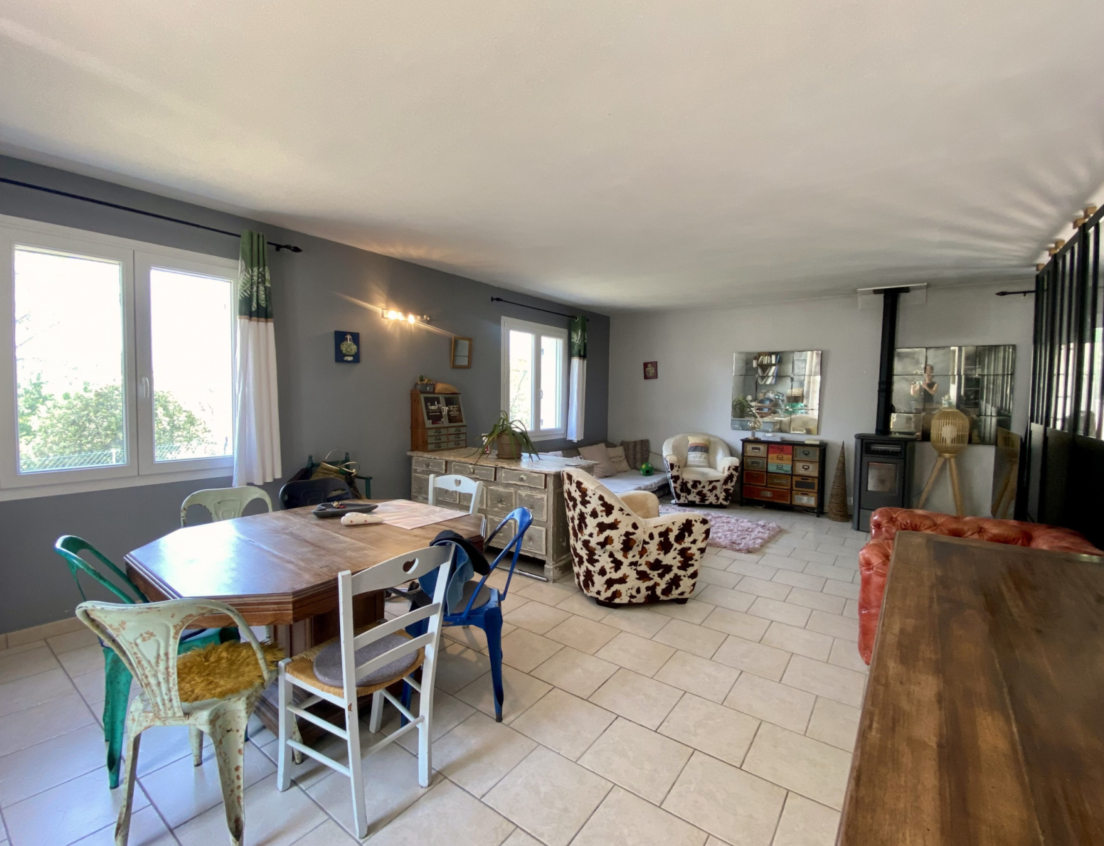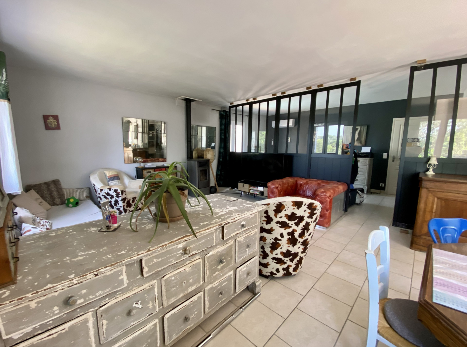 La maison se compose au rez-de-chaussée d'une entrée, un double séjour, une cuisine indépendante aménagée et équipée, un Wc indépendant, une budanderie et un garage.