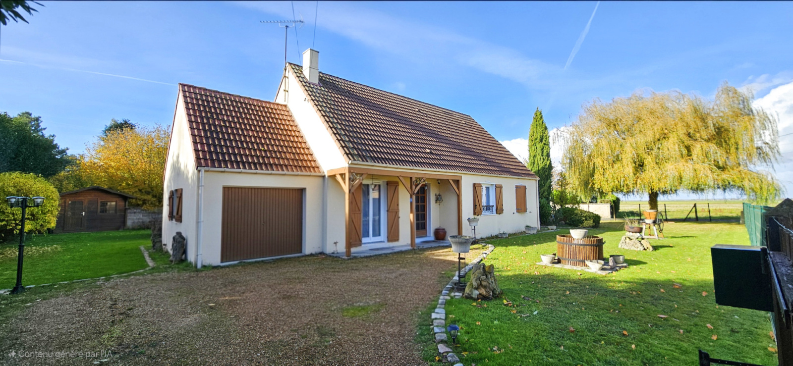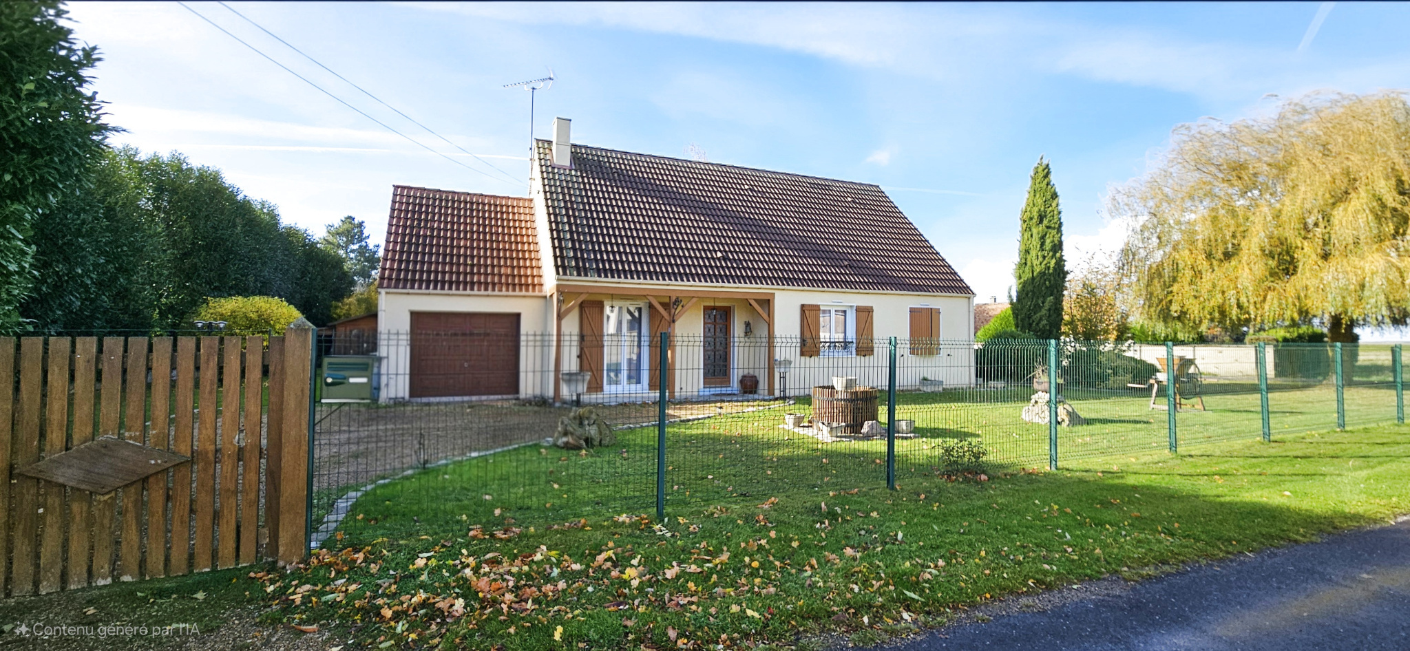 De plain-pied, elle offre 102 m² lumineux sur un beau terrain clos de 1100 m²..