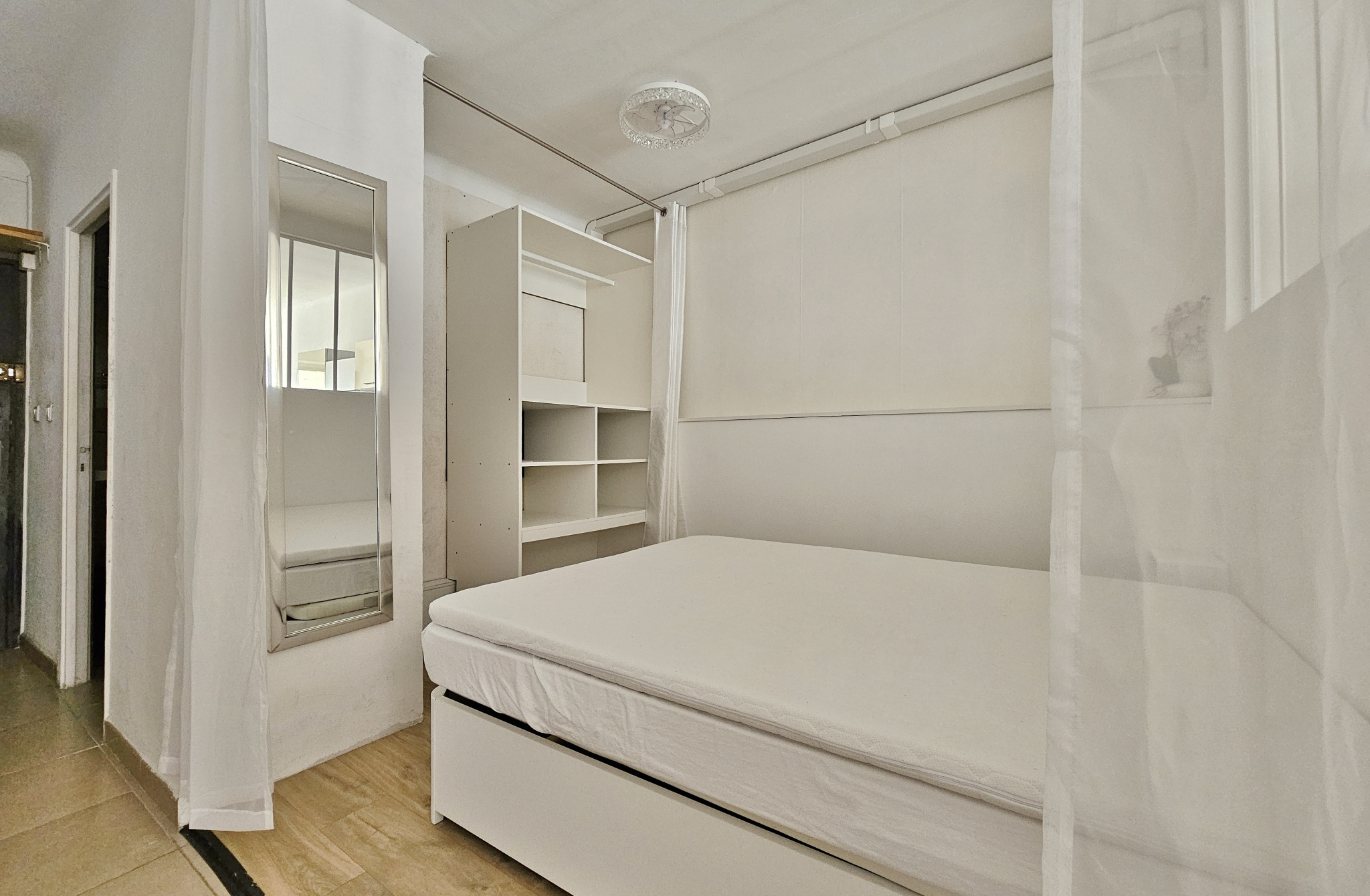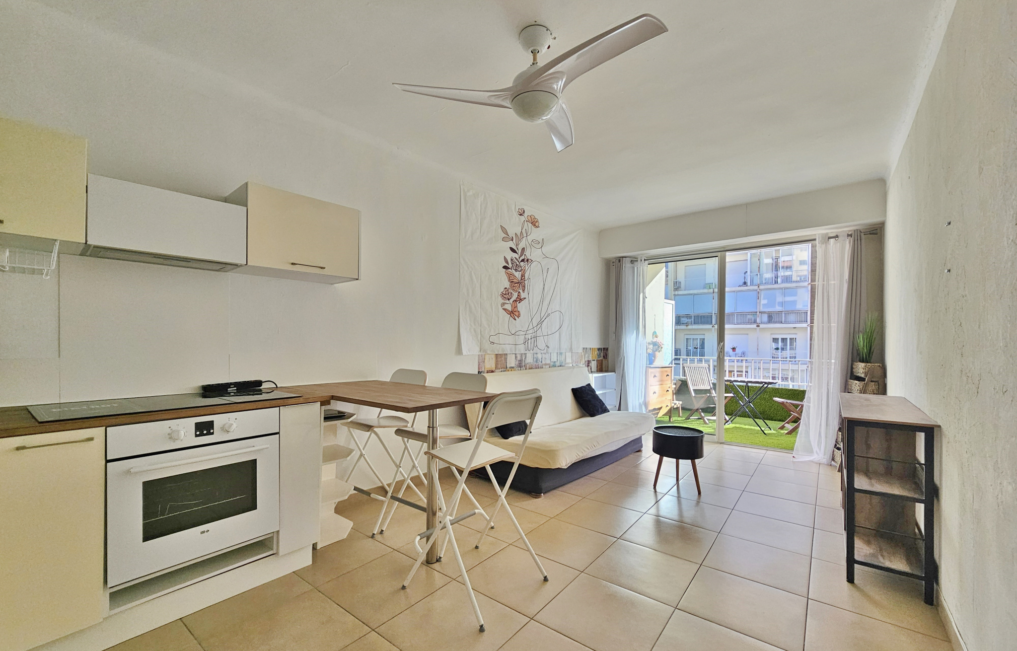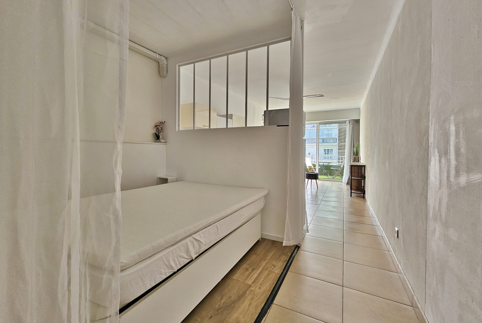 Entièrement rénové et meublé, il se compose d'une entrée, d'un séjour avec cuisine équipée ouverte, d'une chambre séparée avec placards et espace buanderie, et d'une salle d'eau avec wc.
