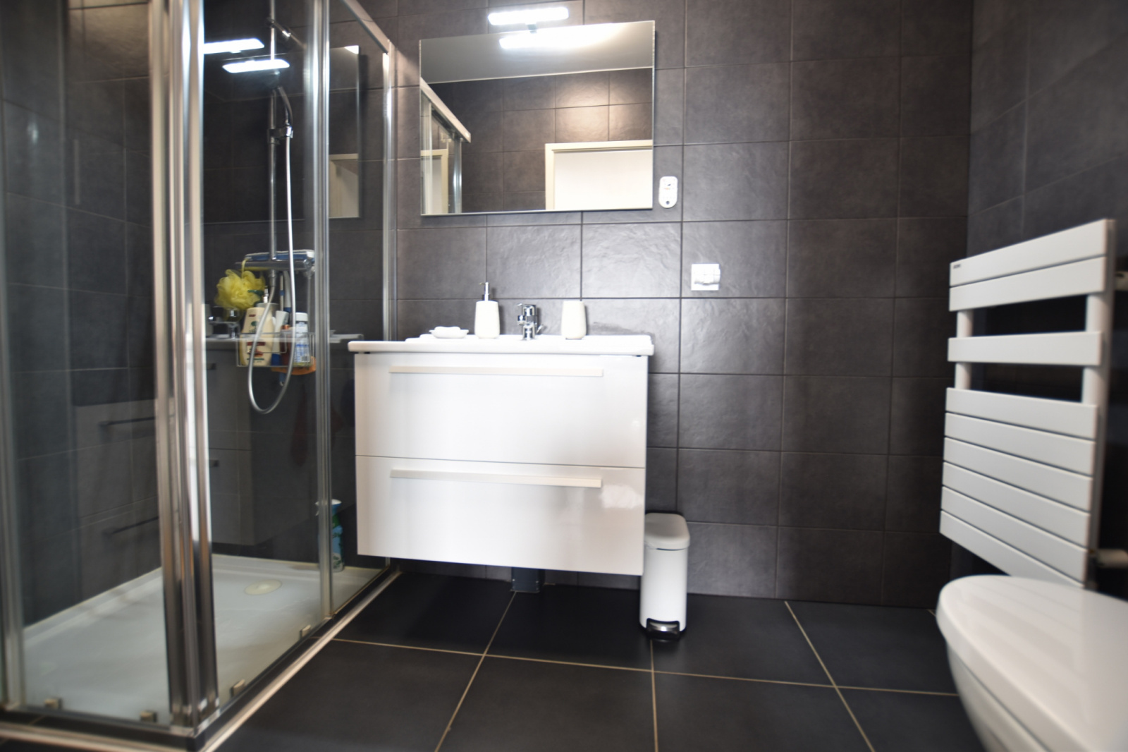 . Parquet au sol et carrelage dans les pièces d'eau.