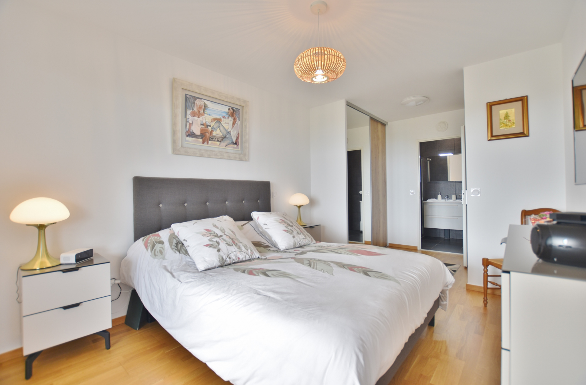 Une chambre avec placards intégrés, une salle d'eau avec espace buanderie, et une suite parentale avec chambre, dressing et salle d'eau + wc privatifs.