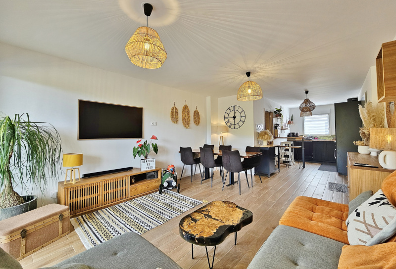 Idéalement situé dans un joli collectif récent à seulement 1km de la plage, découvrez ce charmant T3 avec terrasse couverte de 12m². D'une surface habitable de 68m², il se compose d'un lumineux séjour traversant avec salon, espace repas et cuisine équipée ouverte, deux chambres (11.50m² et 13m²), et une salle de bain avec wc. Agréable terrasse avec belle vue dégagée. Une place de parking extérieure privative complète ce lot. Prestations : . résidence récente année 2021 . construction basse consommation énergétique (DPE A) . double vitrage et volets électriques . climatisation réversible dans chaque pièce . charges copropriété : 220€/trimestre Prix affiché frais d'agence inclus à la charge du vendeur Contact IDIMMO Thomas TERRIER Annonce proposée par un agent commercial