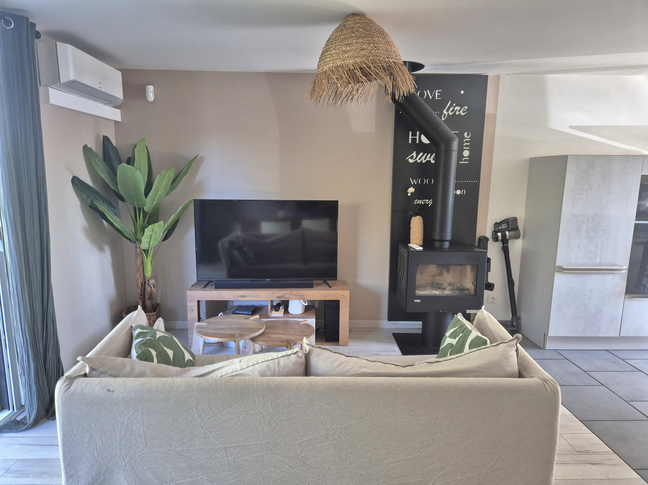 À vendre sur la commune d'Alès maison récente mitoyenne d'un côté en excellent état comprenant au rez-de-chaussée une cuisine équipée ouverte sur un salon-séjour lumineux, d'un hall d'entrée accueillant et d'un WC indépendant. À l'étage, la maison offre une salle de bains (Baignoire, douche, vasque), un WC séparé, ainsi que deux chambres dont une avec dressing et l'autre avec un placard. À l'extérieur, une agréable terrasse de 20 m² vous attend, ainsi qu'un jardin l'ensemble sur une surface cadastrale de 168 m². Les prestations incluent un portail électrique, des menuiseries en PVC double vitrage, des volets roulants électriques, un poêle à bois, des radiateurs électriques et la climatisation au rez-de-chaussée ainsi qu'à l'étage. Christophe Barthelot Tuc immobilier Alès 06.12.50.71.31 Référence 3106 Prix : 175 000 € (Honoraires charge vendeur) EXCLUSIVITE