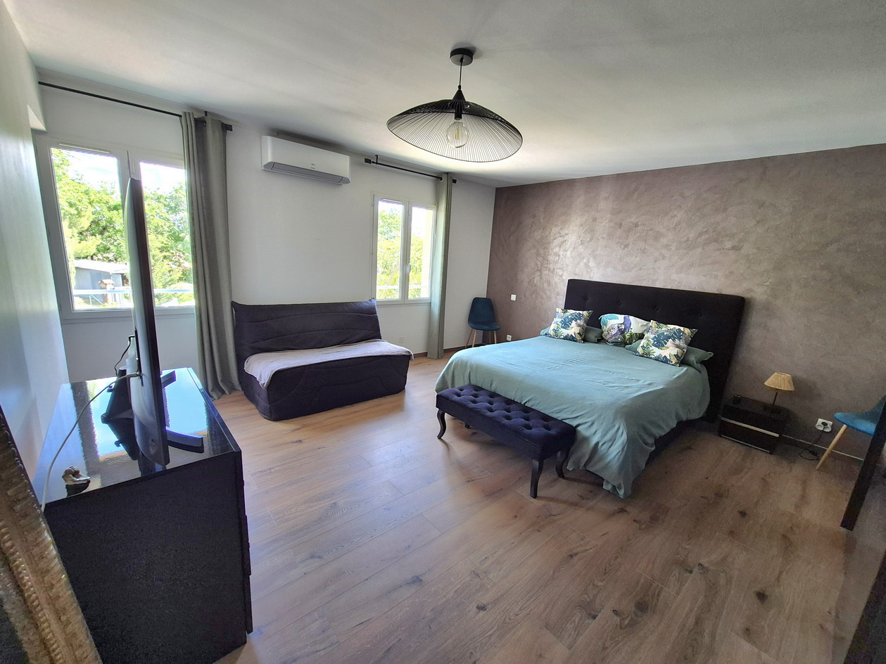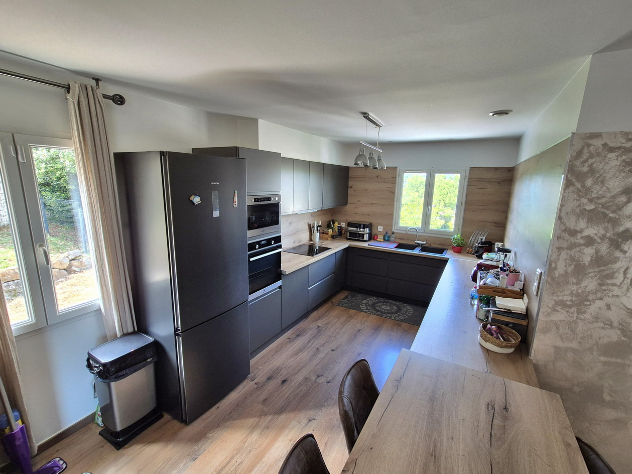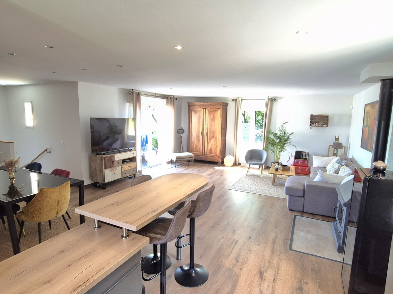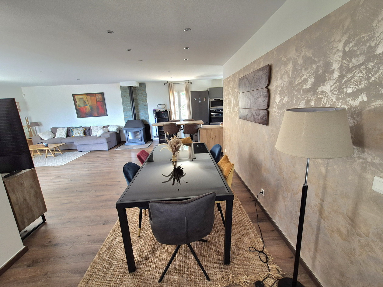 Découvrez cette belle maison rénovée en 2024 située à Alès, offrant de très belles prestations et un cadre de vie agréable. Au rez-de-chaussée, vous trouverez un bureau, un dégagement, un hall, une chambre avec dressing, une salle d'eau avec WC suspendu, une buanderie et un atelier. À l'étage, profitez d'une cuisine équipée ouverte sur un vaste salon-séjour lumineux avec poêle à bois, trois chambres supplémentaires, une salle d'eau et un WC suspendu. La maison bénéficie d'une climatisation réversible pour un confort optimal toute l'année, de double vitrage, d'une terrasse en bois idéale pour vos moments de détente, et d'un terrain de 858 m² avec possibilité d'abri voitures. Les travaux récents assurent une rénovation moderne et soignée. Ce bien est parfait pour une famille à la recherche d'espace et de tranquillité, tout en restant proche des commodités. Christophe Barthelot Tuc immobilier Alès 06.12.50.71.31 Référence 3108 Prix : 359 000 € (Honoraires charge vendeur)