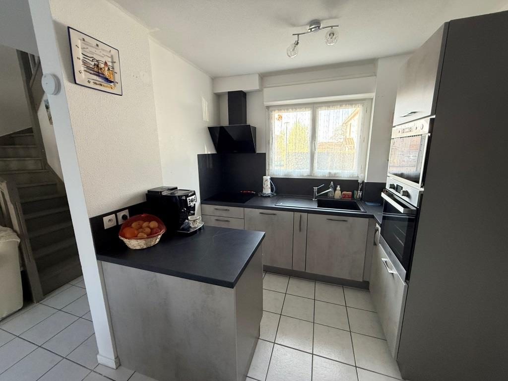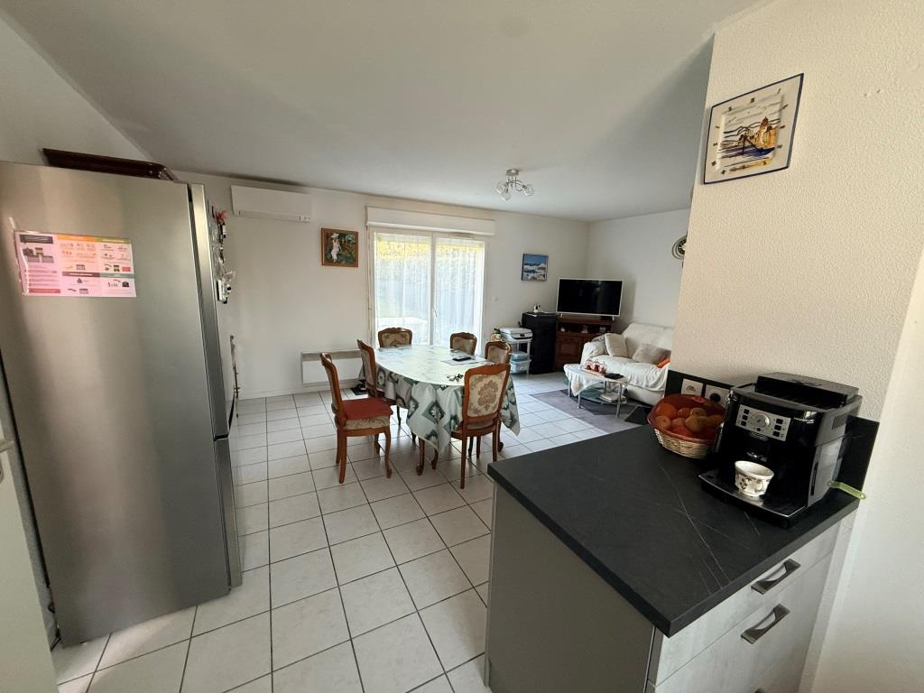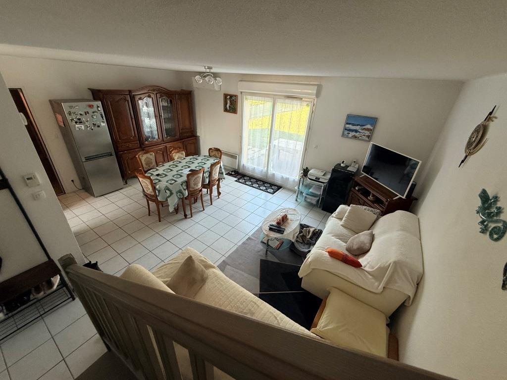 Maison, type villa T3, (superficie Carrez de 65,70 m² + 24,25 m²), mitoyenne par le garage comprenant une entrée avec wc, un salon/séjour avec cuisine ouverte aménagée et équipée et un garage attenant. A l'étage, une salle de bains avec wc et deux chambres. Terrasse et jardin privatif attenant. Pompe à chaleur Air/Air réversible, isolation combles récente. Cet ensemble représente les 153/10 000 èmes des parties communes et générales. Charges de copropriété d'environ 1 100 € / an.