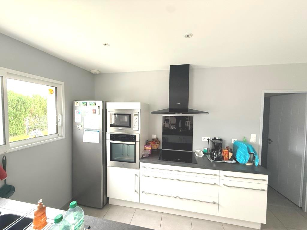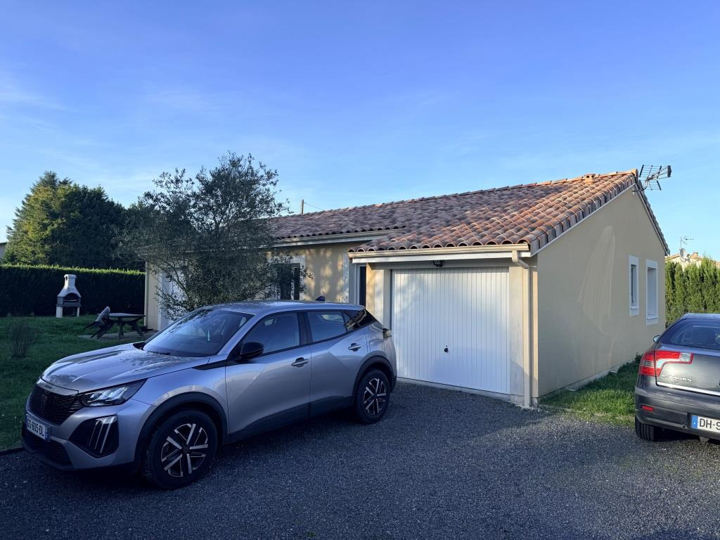 Une maison de plain pied de 2015, comprenant une entrée avec placard donnant sur un salon/séjour avec cuisine ouverte aménagée et équipée, un dégagement desservant un cellier, trois chambres avec placards, une salle de bains avec douche et un wc. Un garage attenant et une cabane de jardin. Le tout sur un terrain d'une superficie d'environ 850 m². Gare SNCF et accès N10 pour Bordeaux à 5 minutes, école maternelle, primaire et collège à 2 minutes.Chauffage au sol (pompe à chaleur air/eau).