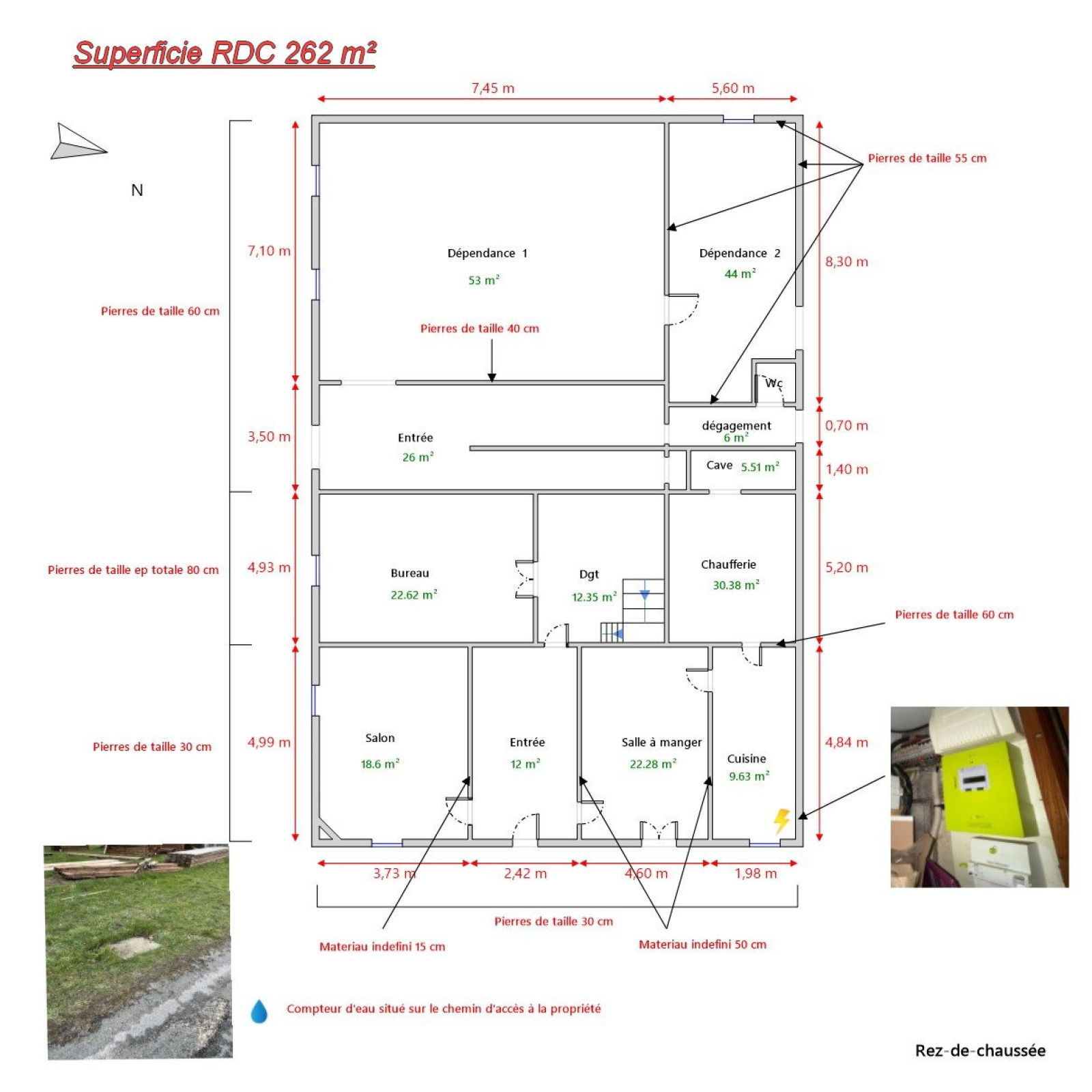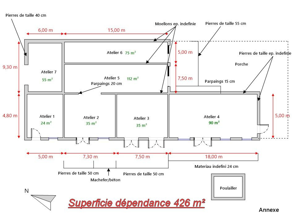 Une maison d’habitation, comprenant au rez-de-chaussée une vaste entrée desservant un salon séjour, salle à manger, cuisine aménagée, second grand salon séjour, chai attenant avec la partie chaufferie. A l’étage, un dégagement desservant 8 chambres, dont 4 avec mezzanine et deux avec velux, un wc, une salle de bains avec cabine de douche. Dépendance attenante pouvant être aménagée en habitation facilement (ouvertures déjà crées). Un grand chai non attenant comprenant un atelier, une grande pièce avec cuves aériennes et cuvier, un hangar, une ancienne stabulation et un chai attenant. Le tout sur un terrain d'une contenance d'environ 18 000 m²