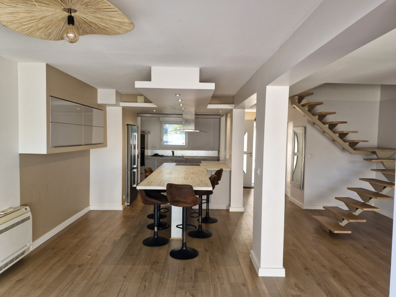 A La Grande-Motte dans quartier de Haute-Plage, découvrez cette villa familiale de 98 m² alliant confort moderne, élégance et qualité de vie, près du centre et des plages. Dès l'entrée vous serez séduits par ses volumes bien pensés et sa luminosité. La villa se compose d'un bel espace de vie avec cuisine ainsi qu'un espace nuit composé de 4 chambres, idéal pour accueillir famille et amis, salle d'eau fonctionnelle. A l'extérieur place à la détente : profitez d'un espace aménagé avec goût avec piscine chauffée et pergola bioclimatique, véritable pièce de vie supplémentaire pour vos repas et moments de convivialité en toute saison. Un bien de prestige où s'établir en toute quiétude. Annonce proposée par un agent commercial