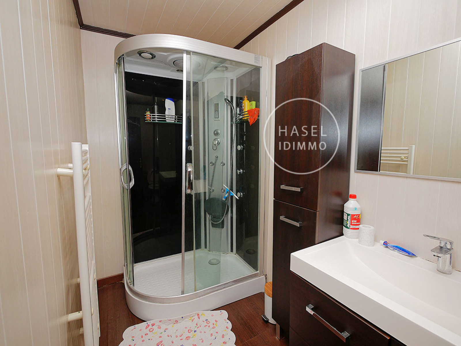 Le salon au rez de chaussé réunira famille et amis pour vos soirées, au besoin autour d’une cheminée. Le garage assure la maintenance avec lave-linge et sèche-linge.