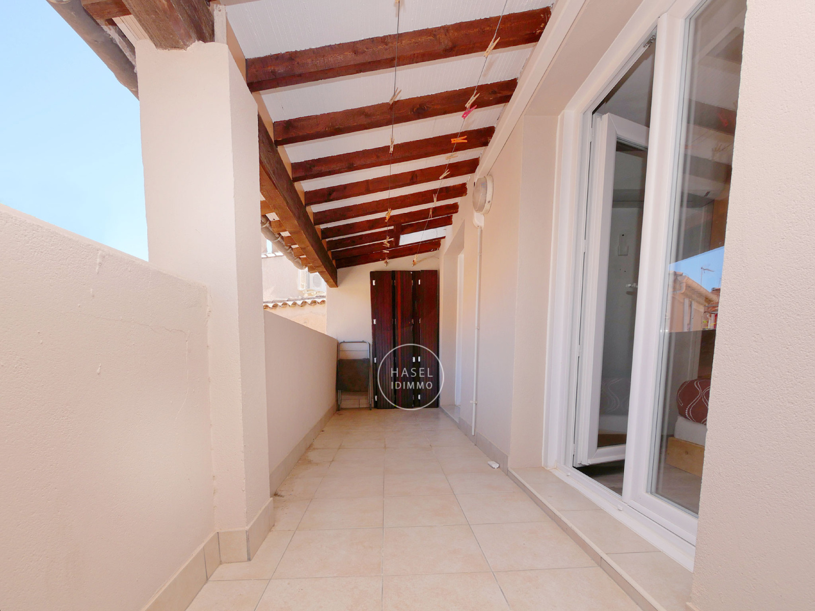 Construite sur 3 niveaux, avec petite terrasse couverte sur toute la largeur de la façade à l'abri des regards au 2d.